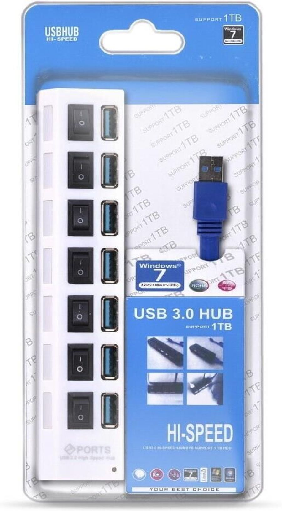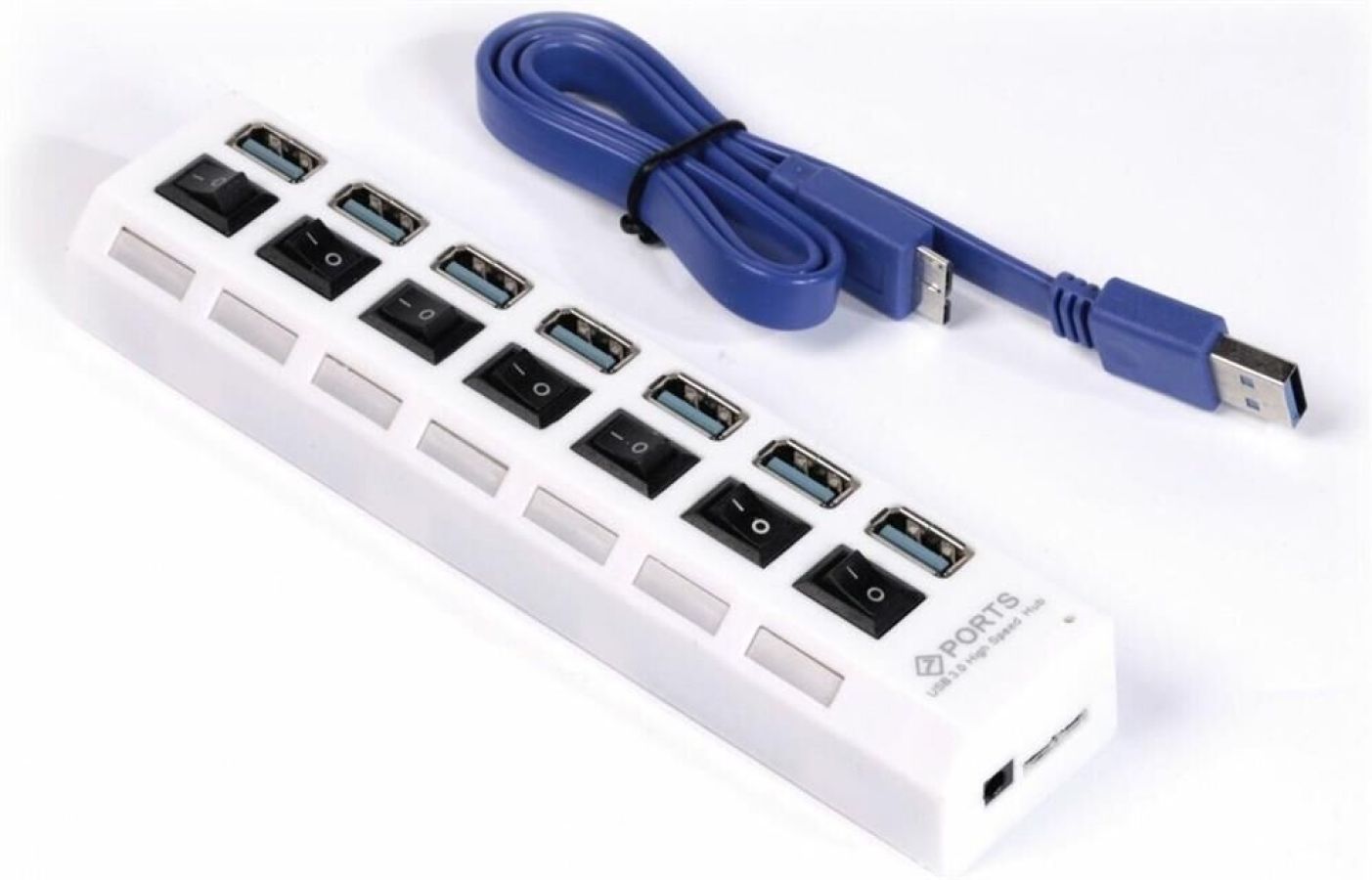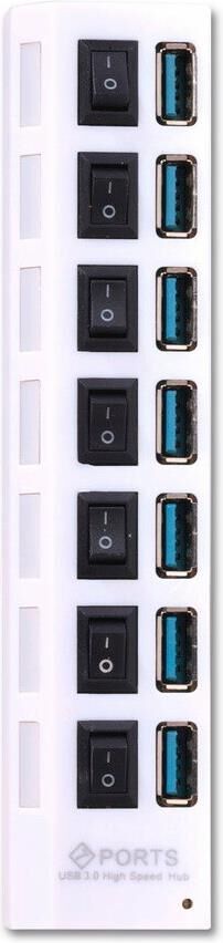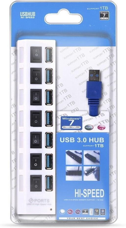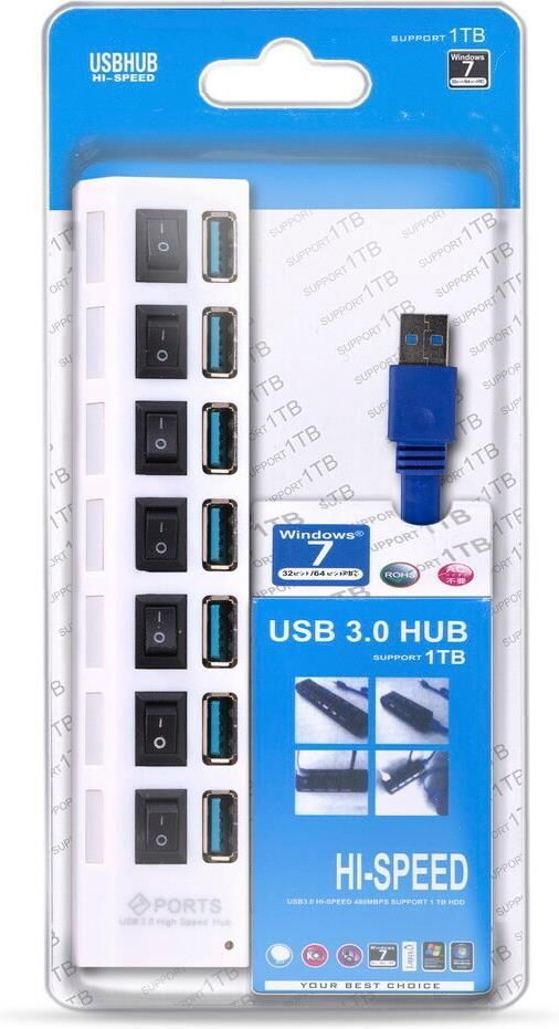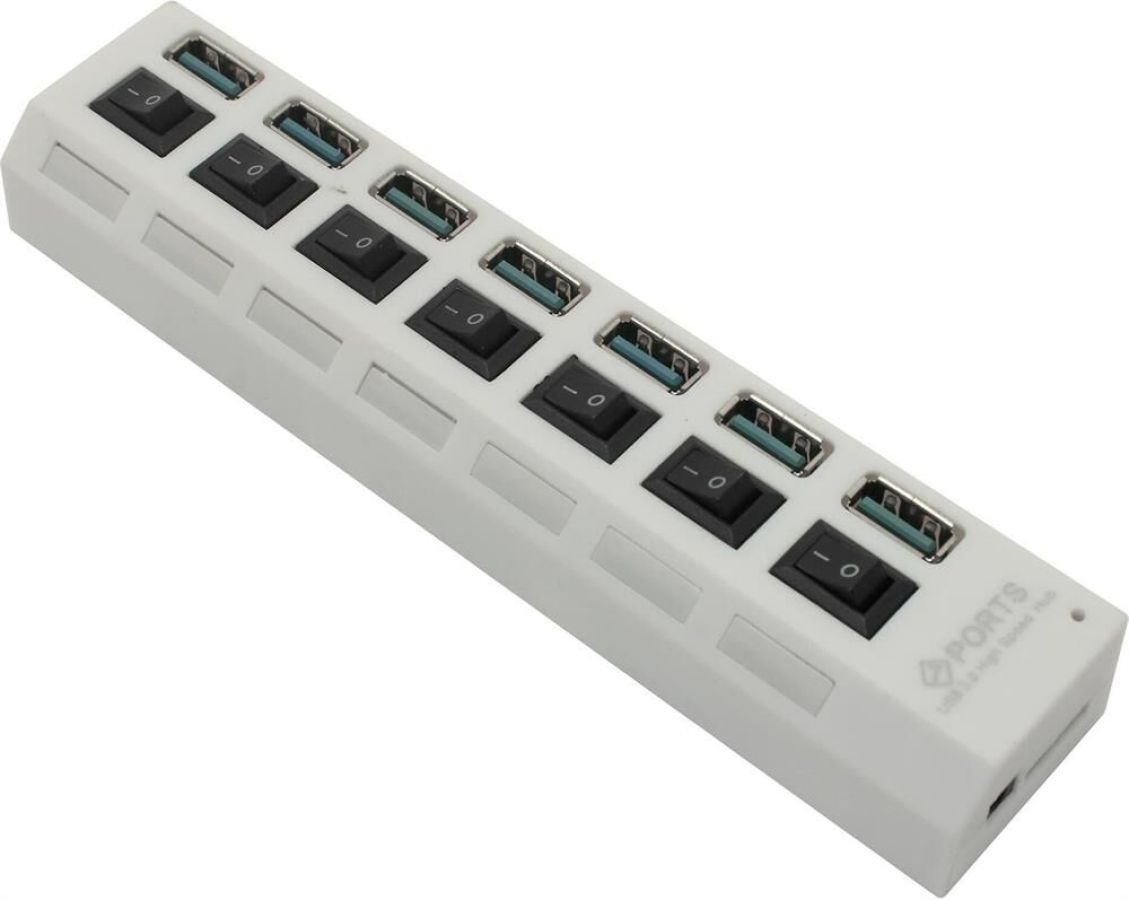 Концентратор, Материал корпуса - Пластик; Разъемы - 7 х USB Type A 3.0; Выключатели порта с индикацией; Максимальная скорость чтения/записи: 5 гбит/с; Вес: 80 грамм; Упаковка: пластиковый блистер со стикером; Режим работы: OTG