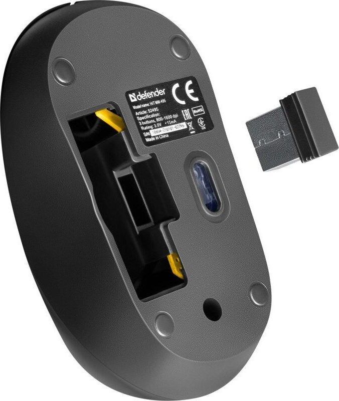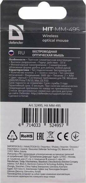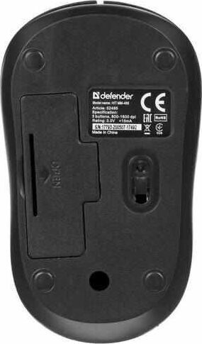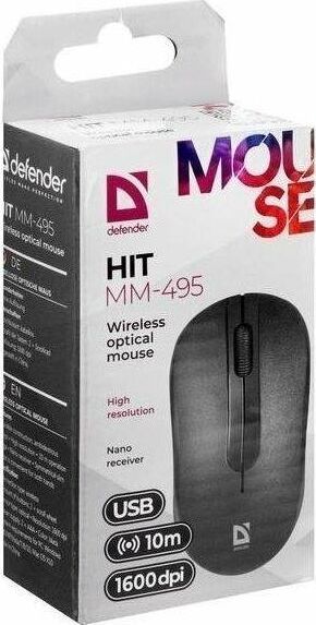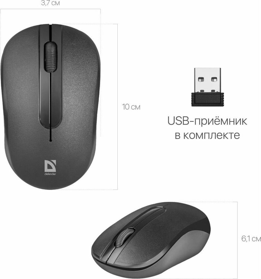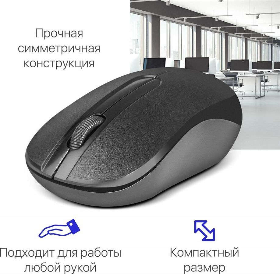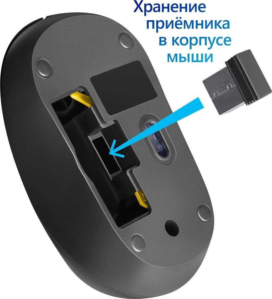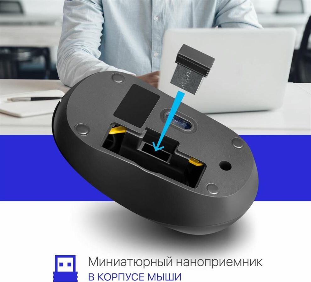 Мышь беспроводная оптическая, интерфейс USB, 2 клавиши+ колесо-кнопка, разрешение сенсора 1600 dpi, радиус действия - до 10 м.