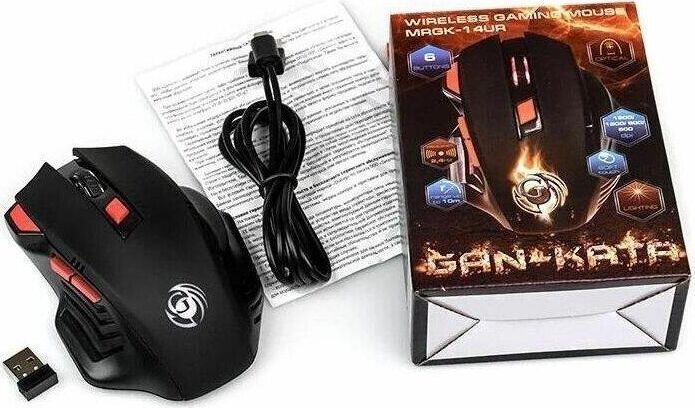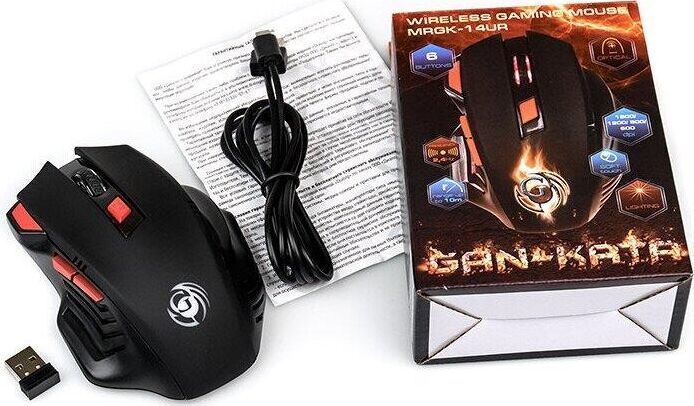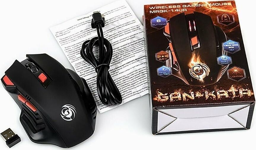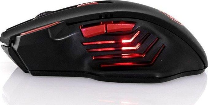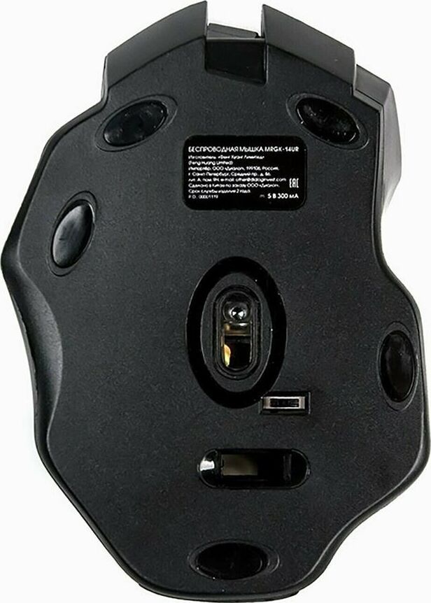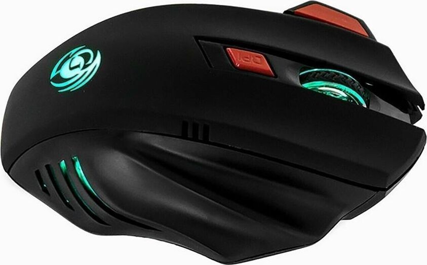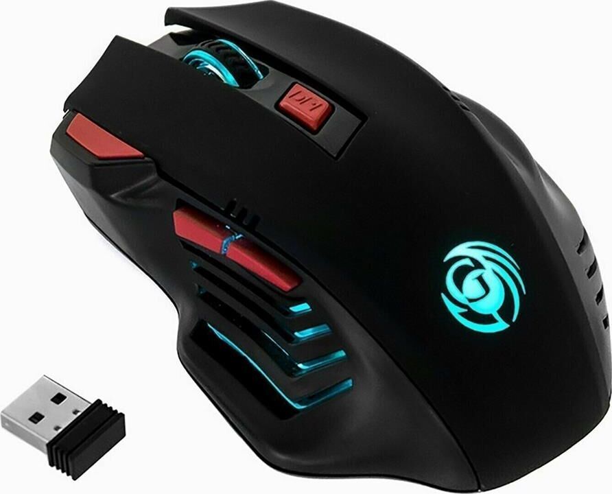 Геймерская мышь, беспроводная, интерфейс USB, динамически изменяемое разрешение 600/800/1200/1600, количество кнопок - 6, вертикальная прокрутка, материал корпуса матовый черный пластик, верхняя панель с кнопками - пластик софт-тач, встроенный перезаряжаемый аккмулятор, тип элементов питания -Li-Ion.