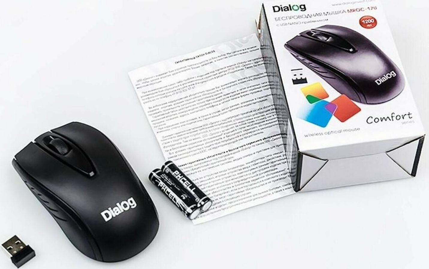 Мышь беспроводная, оптическая, интрефейс USB, количество кнопок - 3 , разрешение - 1200 dpi, радиоинтерфейс 2.4 гГц, радиус действия до 10 метров.