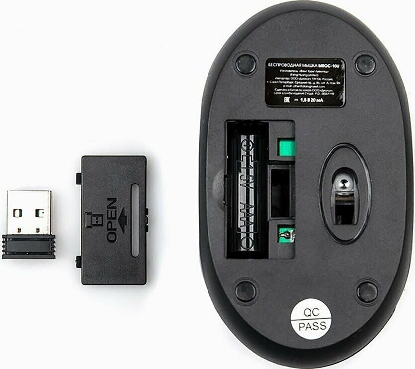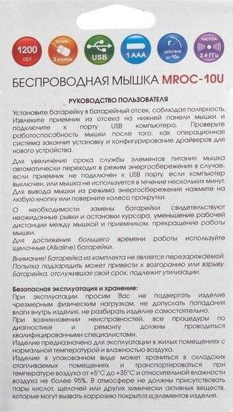 Мышь беспроводная, оптическая, интрефейс USB, количество кнопок - 3 , разрешение - 1200 dpi, радиоинтерфейс 2.4 гГц, радиус действия до 10 метров.