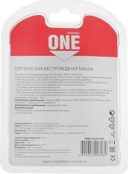Комплектация: Мышь беспроводная SMARTBUY ONE 352 белый , Тип подключения: беспроводной