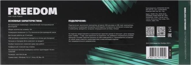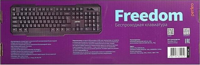 Беспроводная клавиатура Perfeo PF-1010 «FREEDOM» с классической полноразмерной раскладкой. Усовершенствованная 2.4 ГГц технология беспроводной связи. Комфортный плавный ход клавиш Высококачественные мембраны кнопок гарантируют 10 млн нажатий