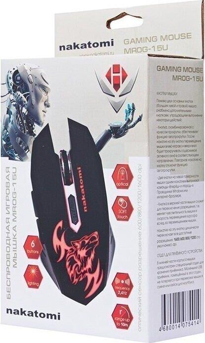 Интерфейс: USB, Тип: Оптическая (видимый диапазон), Разрешение: 800/1200/1600/ 2400, Динамически изменяемое разрешение, изменяется циклически кнопкой "CPI", Материал корпуса: матовый черный пластик, верхняя панель с кнопками - пластик софт-тач. Вставки из полупрозрачного светлого пластика (подсветка), Подсветка: красная, зеленая, синяя, фиолетовя, голубая - сменяется циклически, Количество кнопок: 6, Прокрутка: вертикальная, прозрачный пластиковый ролик с рифлёным резиновым ободом, Особенности модели: Крупная асимметричная мышь с дополнительными кнопками управления под большим пальцем правой руки. Будет удобна правшам с крупной ладонью. Боковые кнопки "вперёд" и "назад" с коротким ходом, Длина кабеля, м: 1.5м текстильная оплётка.