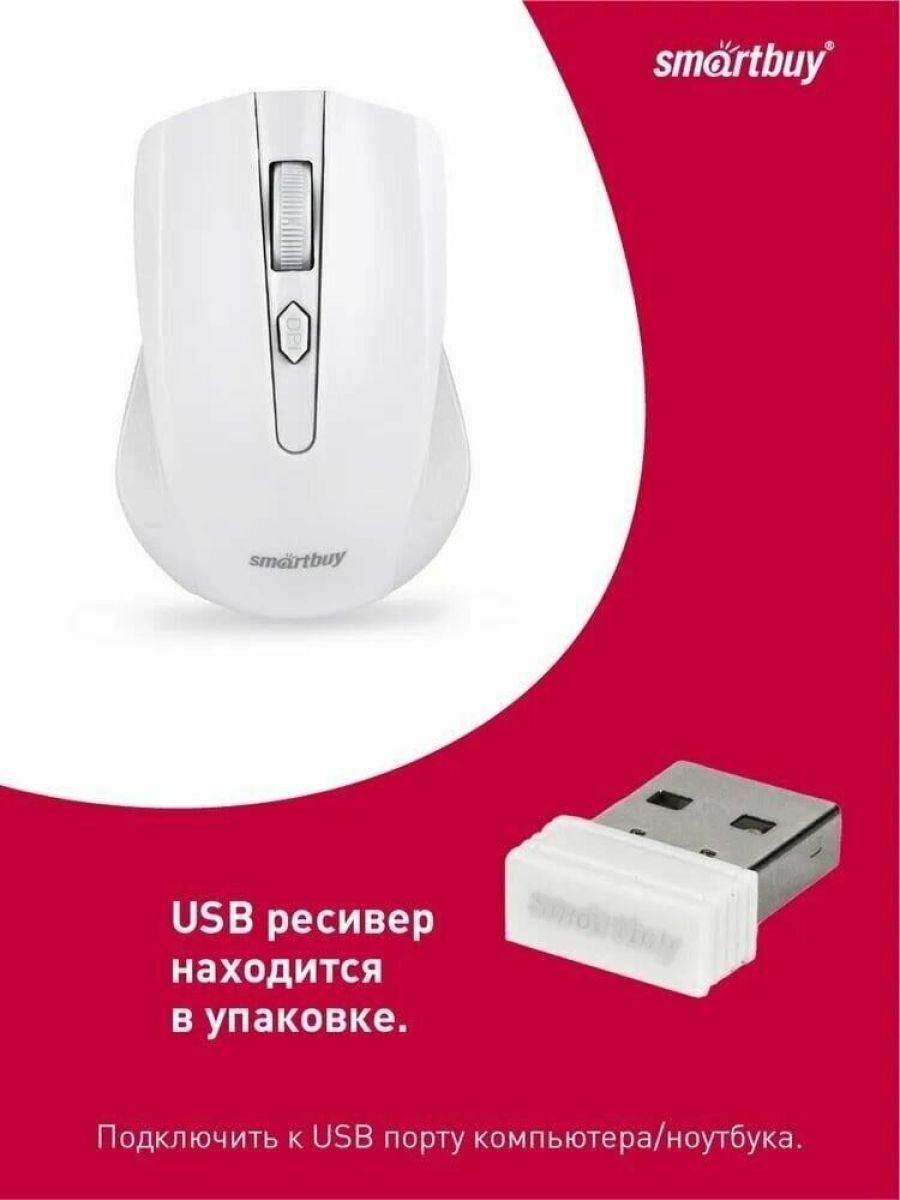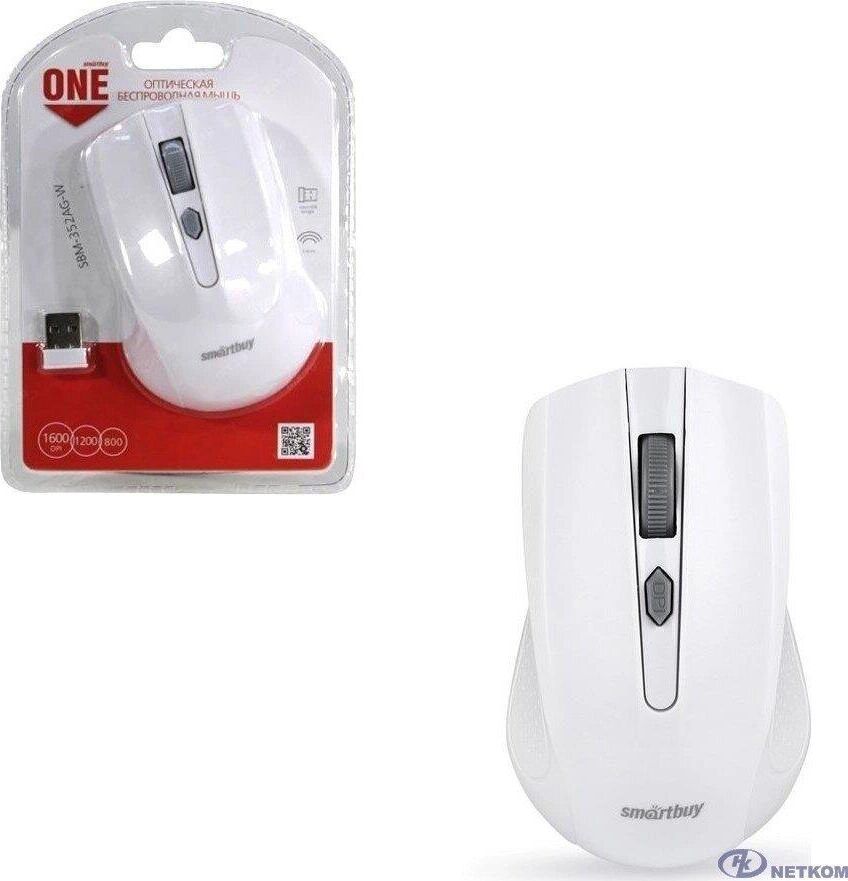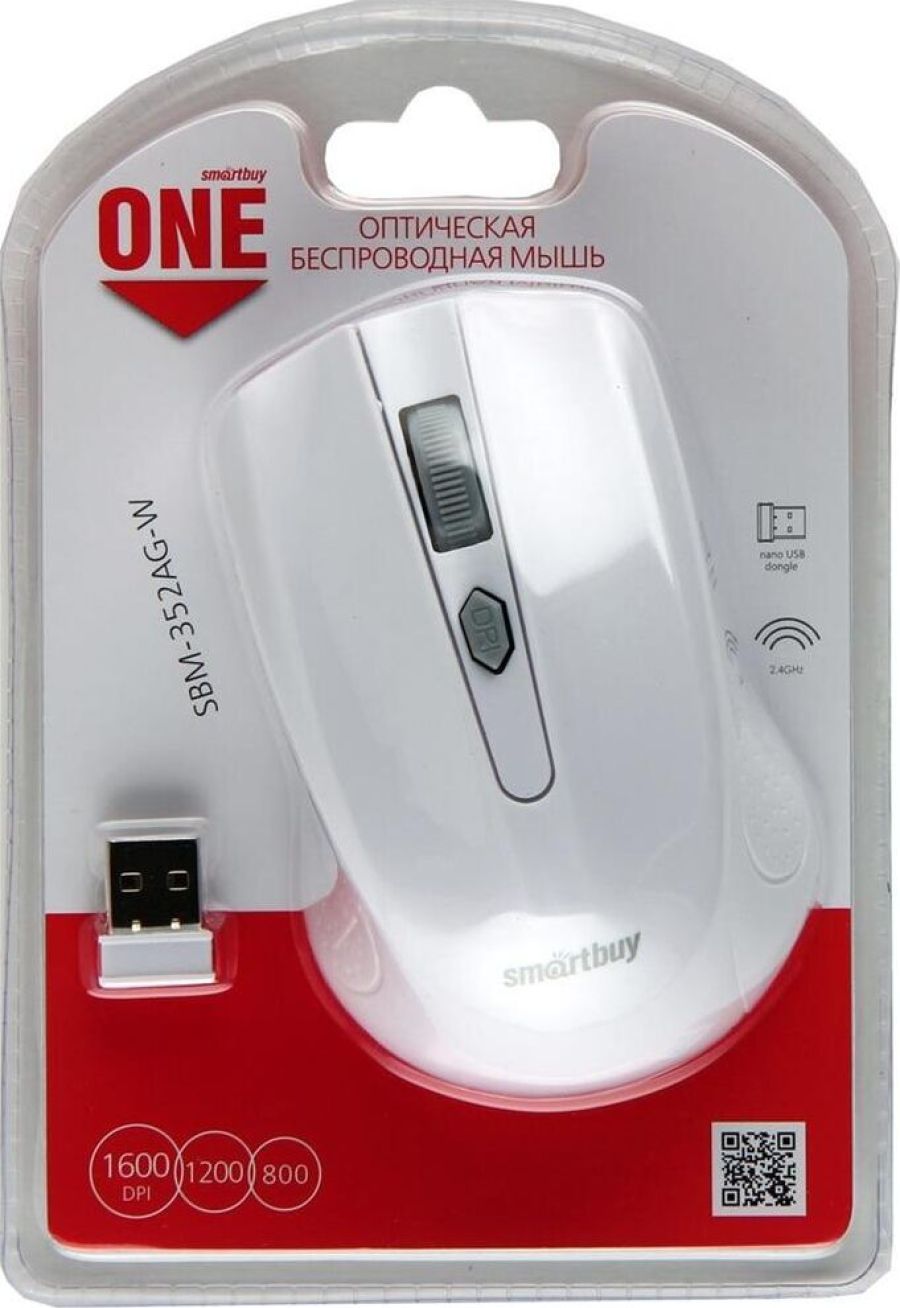 Комплектация: Мышь беспроводная SMARTBUY ONE 352 белый , Тип подключения: беспроводной