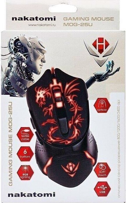 Интерфейс: USB, Тип: Оптическая(видимый диапазон),Разрешение800/1200/1600/ 2400, Динамически изменяемое разрешение, изменяется циклически центральной кнопкой, Кол-во кнопок: 6, Прокрутка: вертикальная, полупрозрачный пластиковый ролик с резиновым ободом. Сниженное сопротивление ролика - очень лёгкая прокрутка, Особенности модели: Крупная асимметричная мышь с дополнительными кнопками управления под большим пальцем правой руки. Будет удобна правшам с крупной ладонью. Боковые кнопки "вперёд" и "назад" с коротким ходом. Очень лёгкое и крупное колёсико прокрутки, Длина кабеля, м: 1.5м текстильная оплётка.