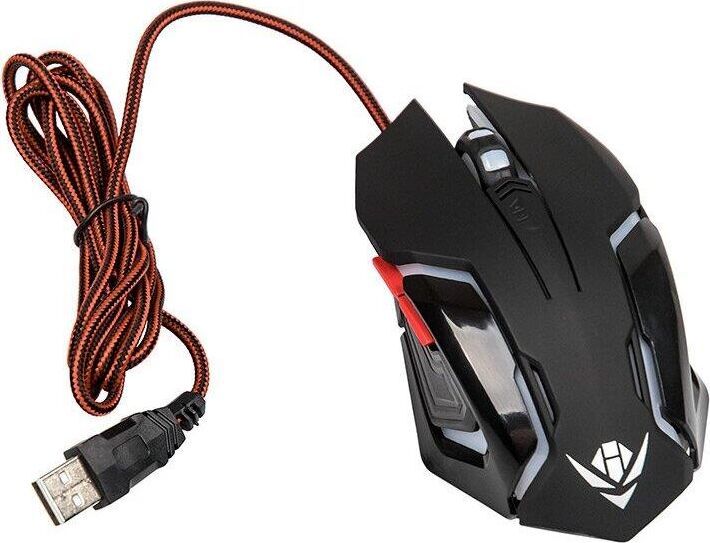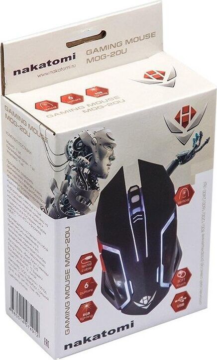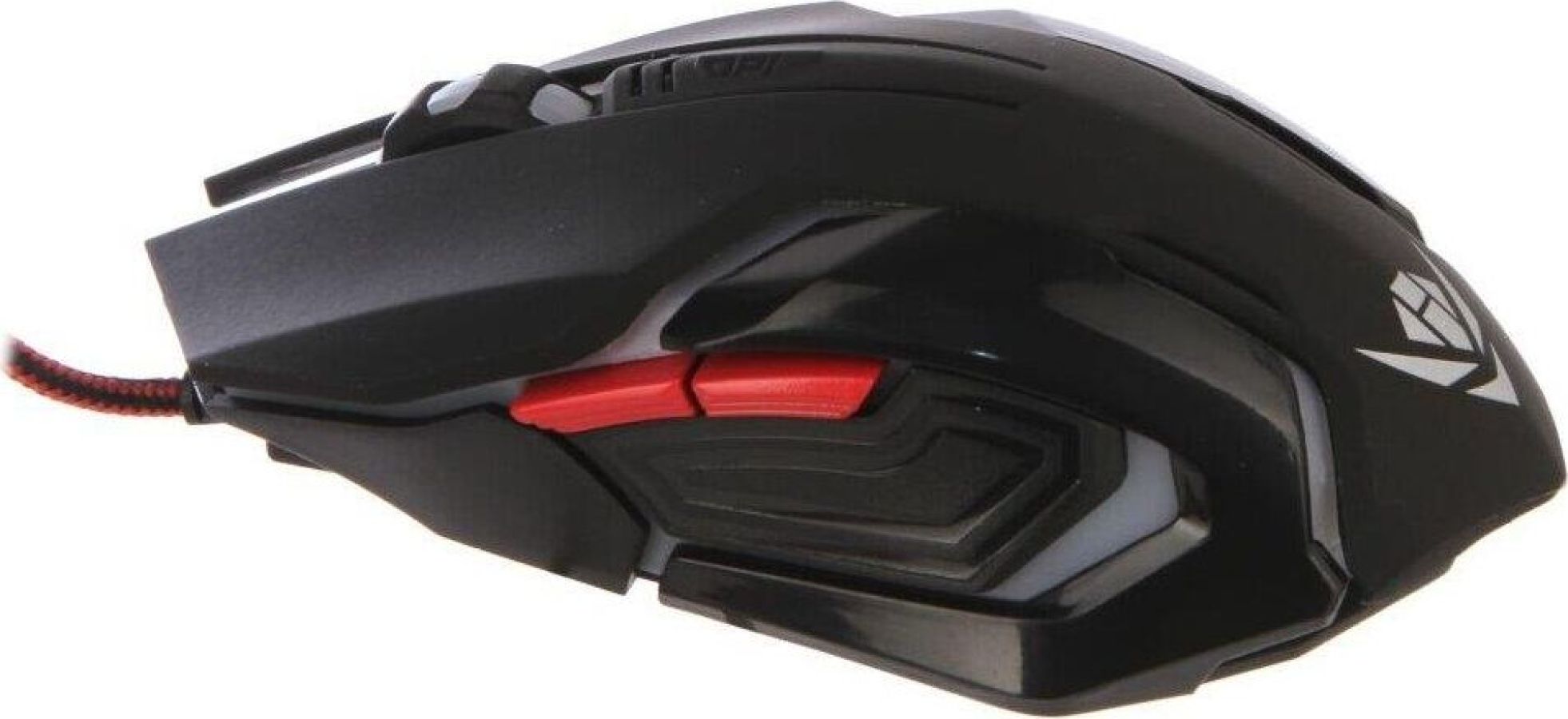 Интерфейс: USB, Тип: Оптическая (видимый диапазон), Разрешение: 800/1200/1600/ 2400, Динамически изменяемое разрешение, изменяется циклически кнопкой "DPI", Материал корпуса: матовый черный пластик, глянцевый чёрный пластик, верхняя панель с кнопками - пластик софт-тач. Вставки из полупрозрачного светлого пластика (подсветка). Красные дополнительные кнопки, Количество кнопок: 6, Прокрутка: вертикальная, полупрозрачный пластиковый ролик с резиновым ободом Особенности моделиКрупная асимметричная мышь с дополнительными кнопками управления под большим пальцем правой руки. Боковые кнопки "вперёд" и "назад" с коротким ходом, Длина кабеля, м: 1.5м текстильная оплётка.