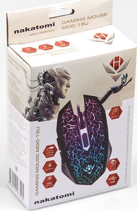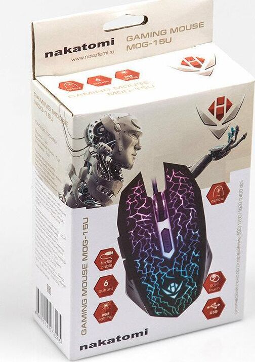 Тип: Оптическая (видимый диапазон), Разрешение: 800/1200/1600/2400, Динамически изменяемое разрешение, изменяется циклически кнопкой "CPI", Материал корпуса: матовый черный пластик, верхняя панель с кнопками - пластик софт-тач. Вставки из полупрозрачного светлого пластика (подсветка), Кол-во кнопок: 6, Прокрутка: вертикальная, прозрачный пластиковый ролик с рифлёным резиновым ободом, Особенности модели: Крупная асимметричная мышь с дополнительными кнопками управления под большим пальцем правой руки. Будет удобна правшам с крупной ладонью. Боковые кнопки "вперёд" и "назад" с коротким ходом., Длина кабеля, м: 1.5м текстильная оплётка.