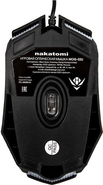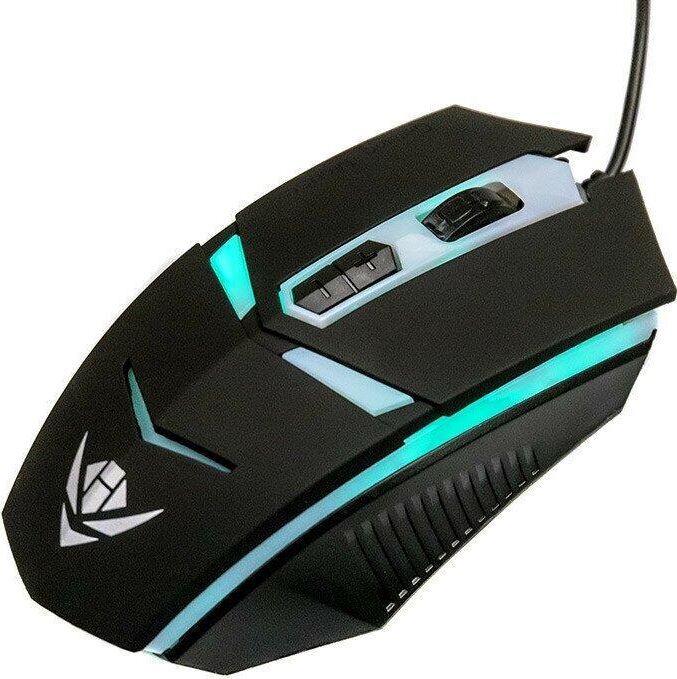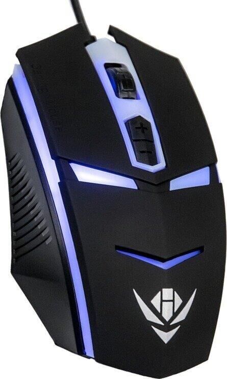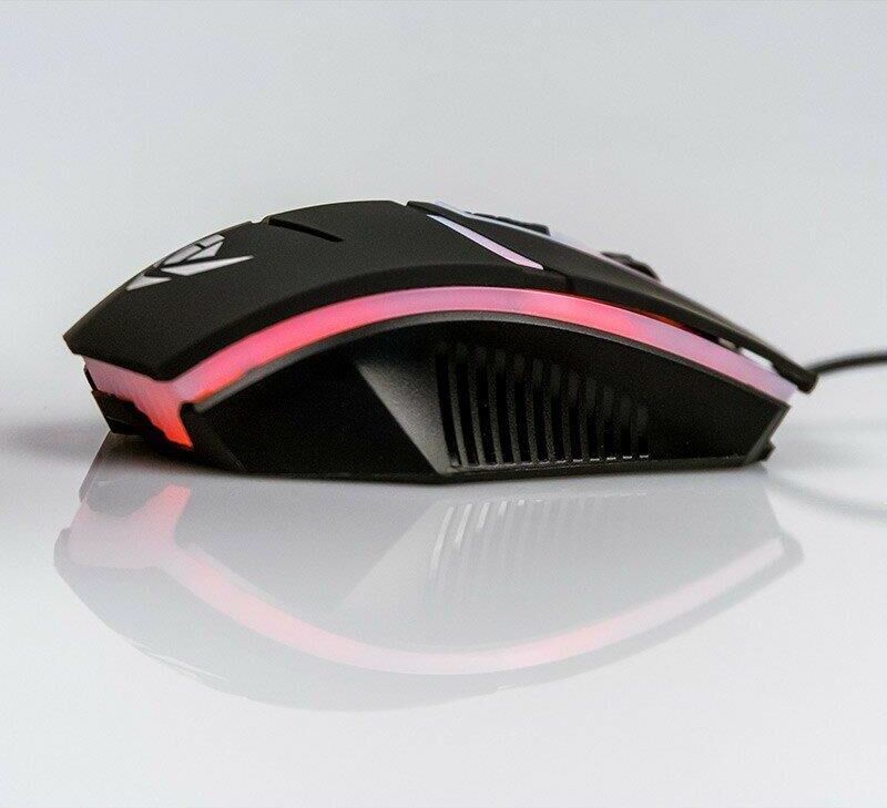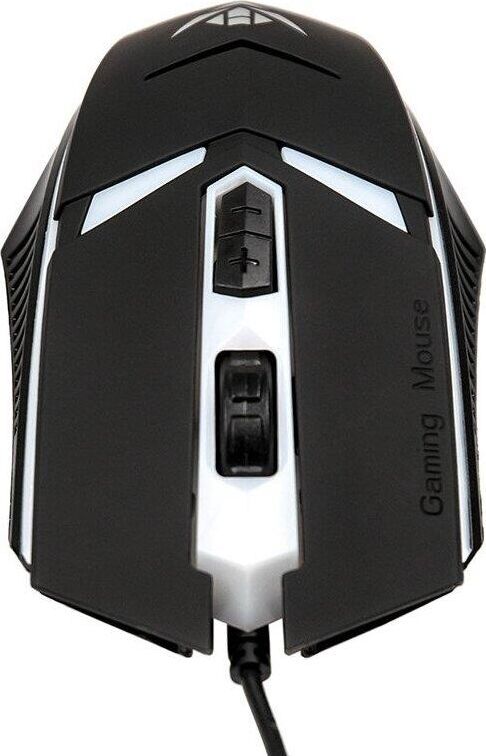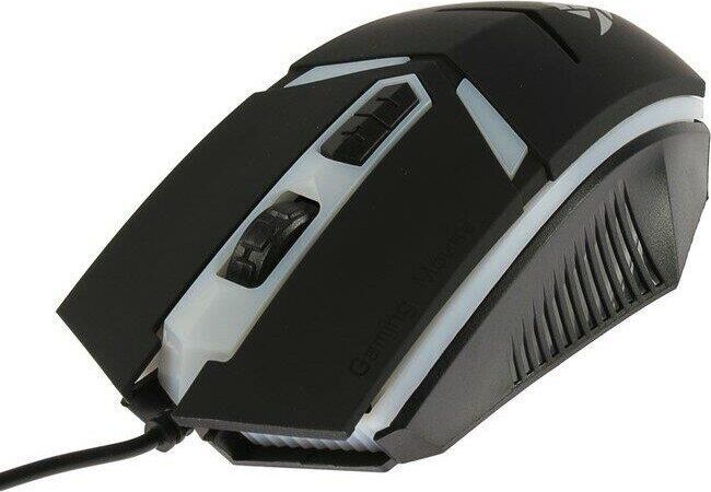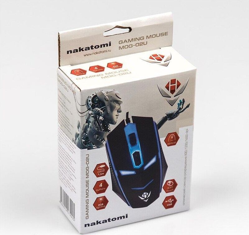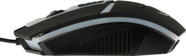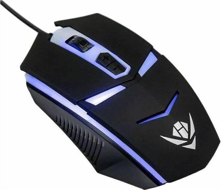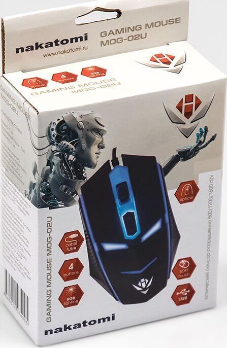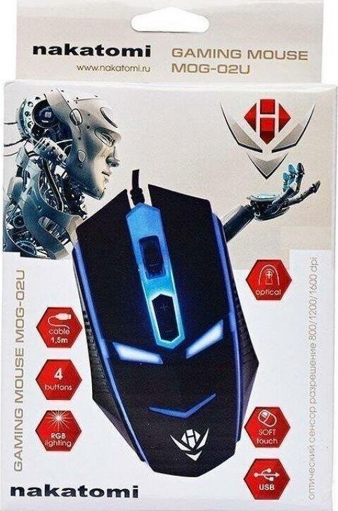 Интерфейс: USB, Тип: Оптическая (видимый диапазон),Разрешение: 800/1200/1600, Динамически изменяемое разрешение, изменяется кнопками "+" и "-", Материал корпуса: матовый черный пластик, верхняя панель с кнопками - пластик софт-тач. Вставки из полупрозрачного светлого пластика (подсветка), Подсветка: красная, зеленая, синяя, фиолетовя, голубая - сменяется циклически, Количество кнопок: 5, Прокрутка: вертикальная, пластиковый ролик, Особенности модели: Крупная симметричная мышь - подходит одинаково и для правшей, и для левшей, Длина кабеля, м: 1.5.