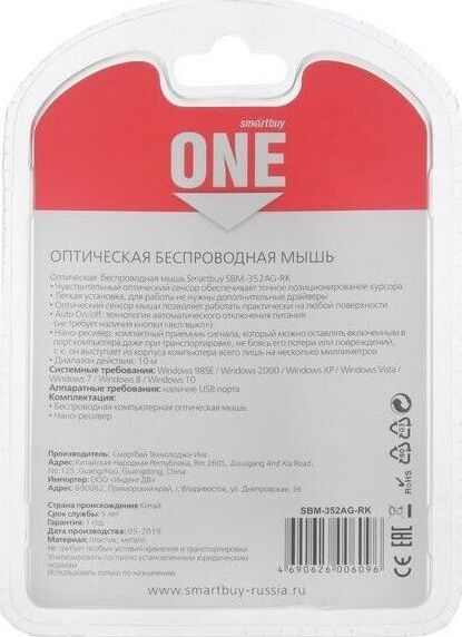 Комплектация: Мышь беспроводная SMARTBUY ONE 352 белый , Тип подключения: беспроводной