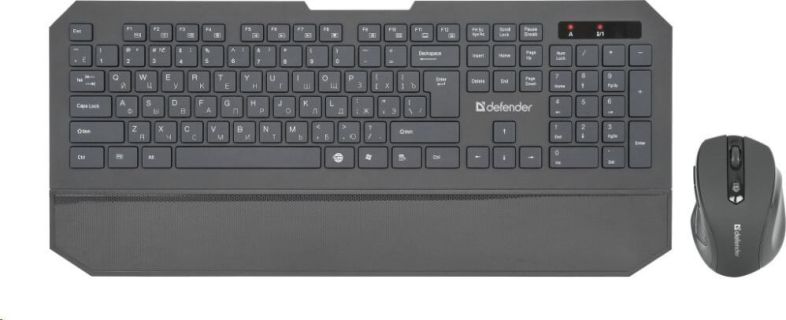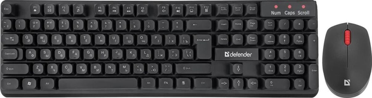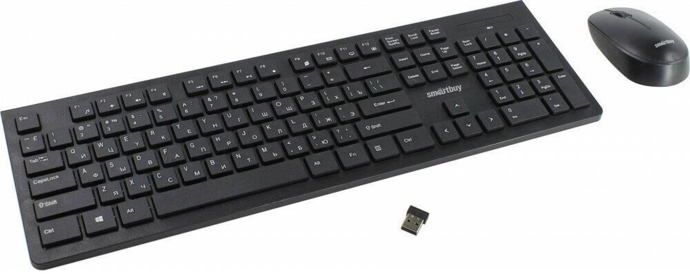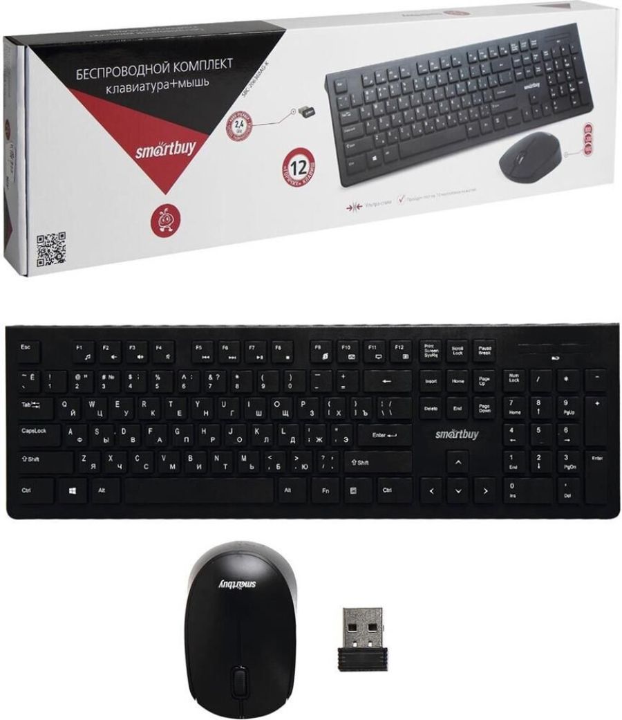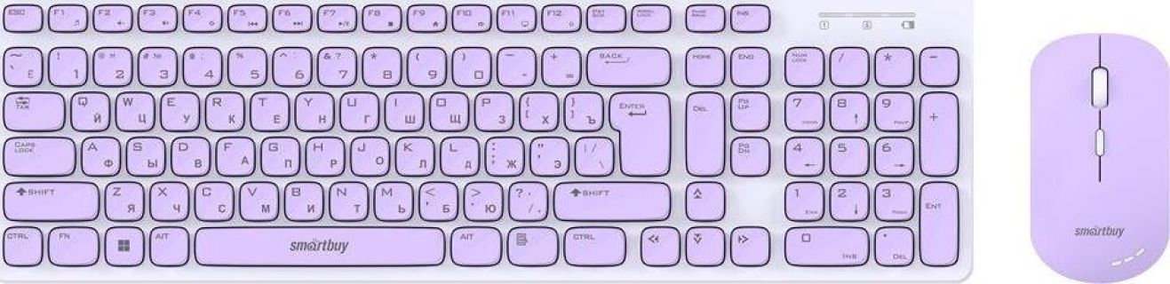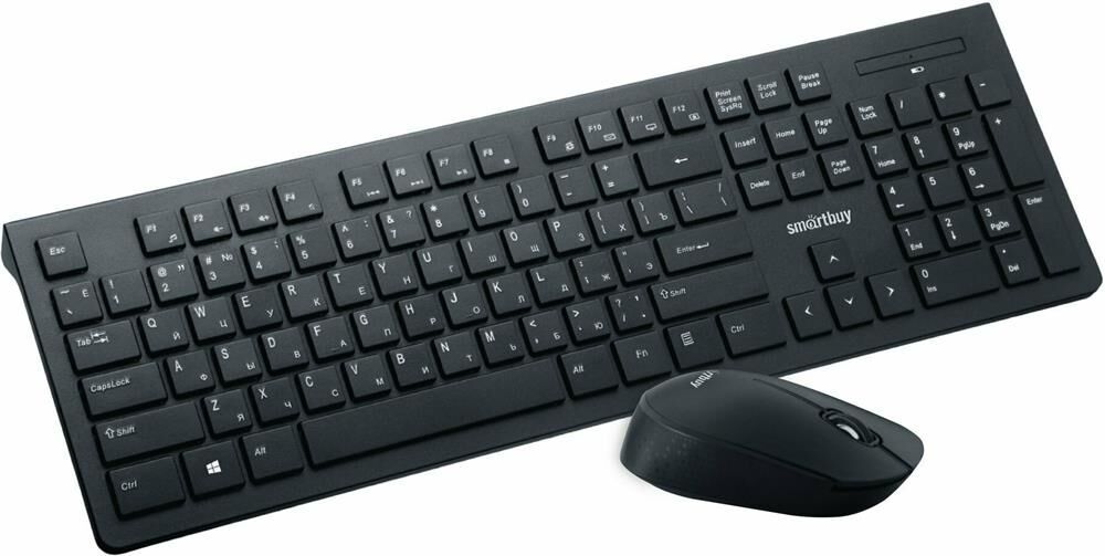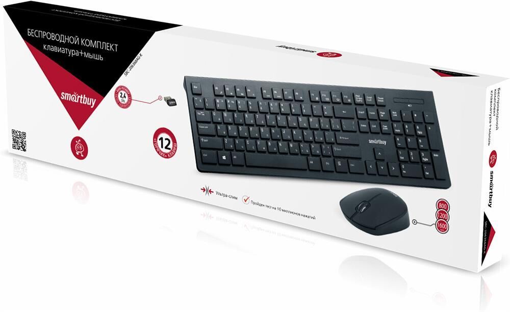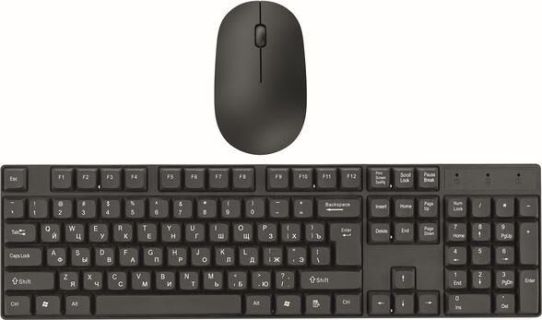 Комплект беспроводной (клавиатура+мышь), классическая раскладка клавиатуры; островной (ноутбучный) тип клавиш; мультимедийный функционал (12 горячих клавиш); симметричная мышь, 800-1200-1600 DPI; диапазон действия до 10 м