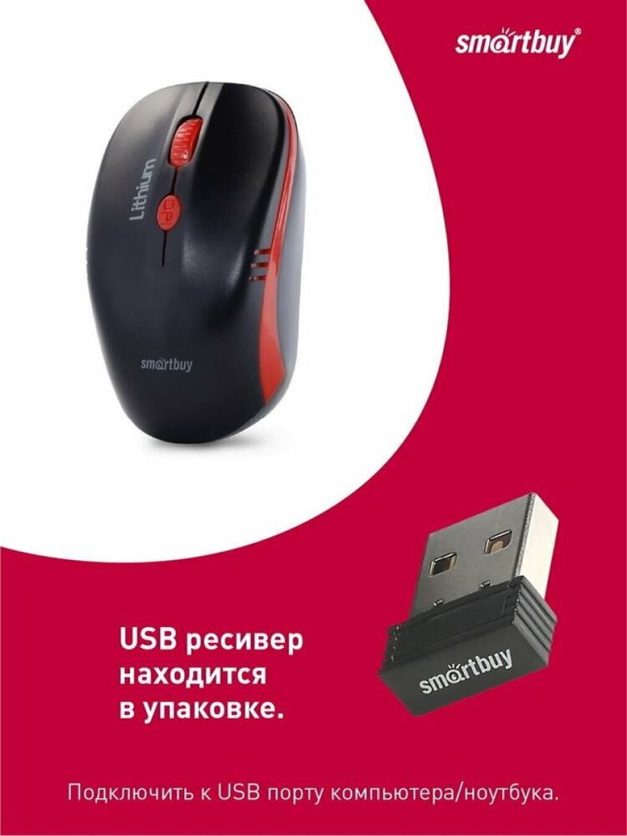 Мышь беспроводная SMARTBUY (SBM-344CAG-KR) черный/красный в интернет магазине КорБТ