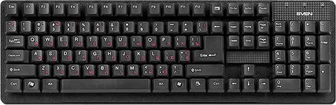 Проводная полноразмерная клавиатура, относящаяся к ультрабюджетным моделям. Подойдет для пользователей, которым не нужны излишества игровых клавиатур или обилие дополнительных функций — модель сочетает в себе максимальную простоту и функциональность. Устройство имеет классическую раскладку, которая делает работу с девайсом более комфортной и обеспечивает высокую скорость печати. Есть клавиша быстрого доступа к калькулятору, что очень пригодится как для работы в офисе, так и для домашнего использования. Влагоустойчивая конструкция. Количество клавиш - 105. Кол-во клавиш быстрого доступа - 1. Контакты клавиш - мембранные с тактильной обратной связью. Размеры изделия - 436*25*136 мм. Вес - 410 г.