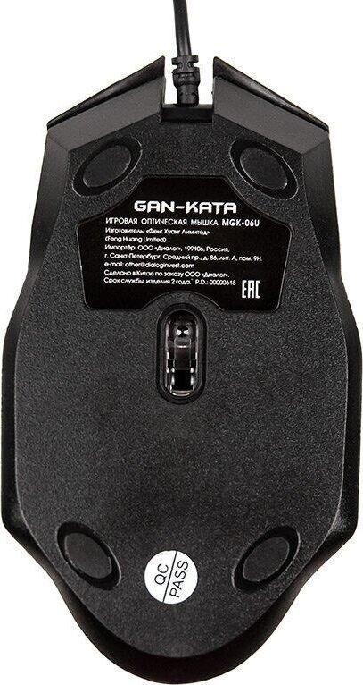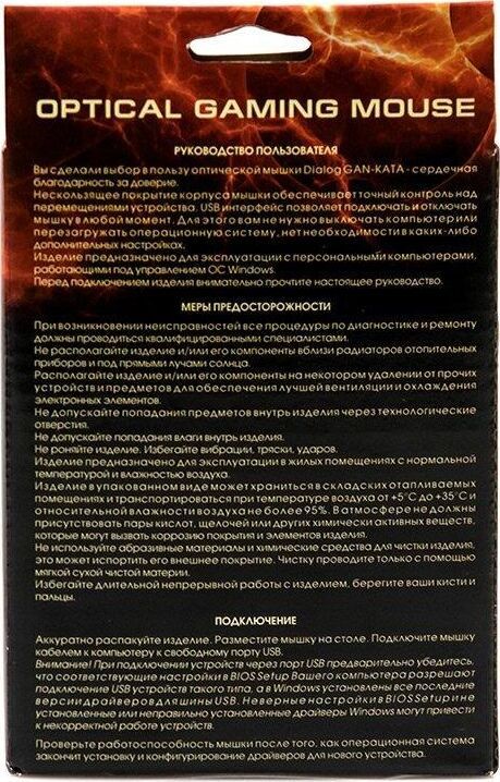 Мышь игровая, проводная, оптическая, интерфейс USB, изменяемое разрешение - 800/1200/1600 dpi, цветная подсветка, количество кнопок - 4+ролик, покрытие Soft-touch на панели кнопок, длина кабеля - 1,5 м.