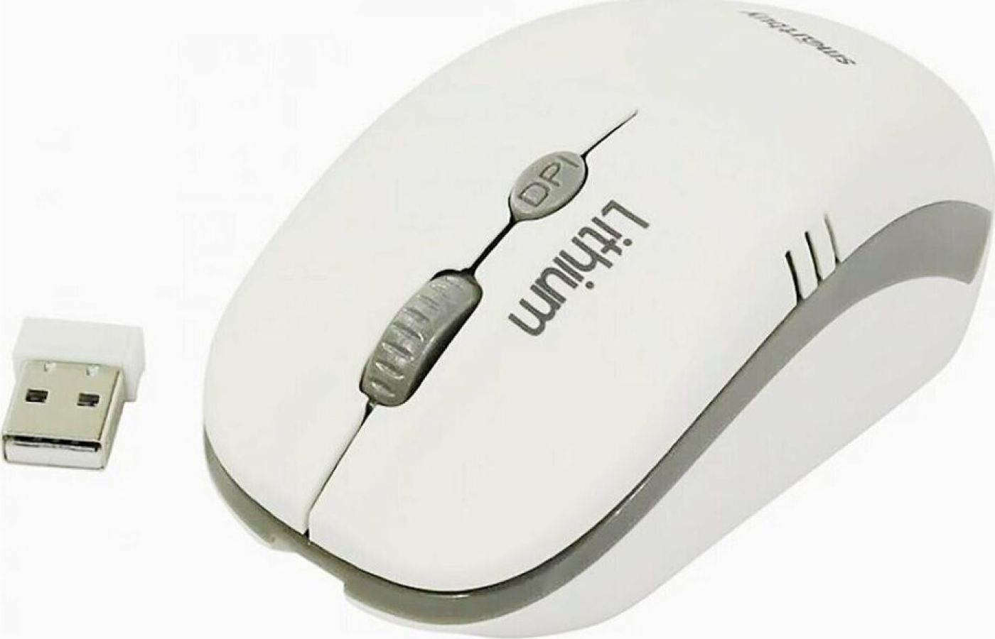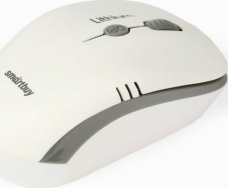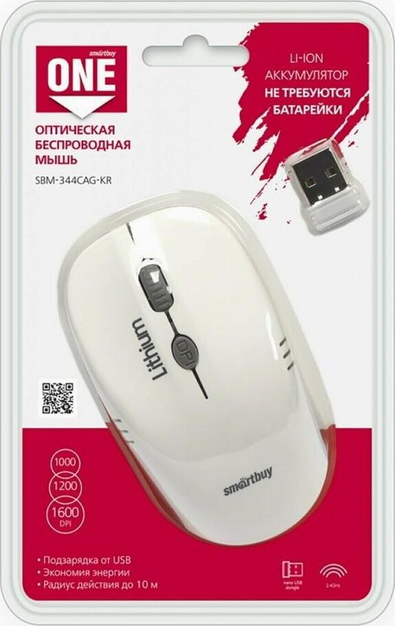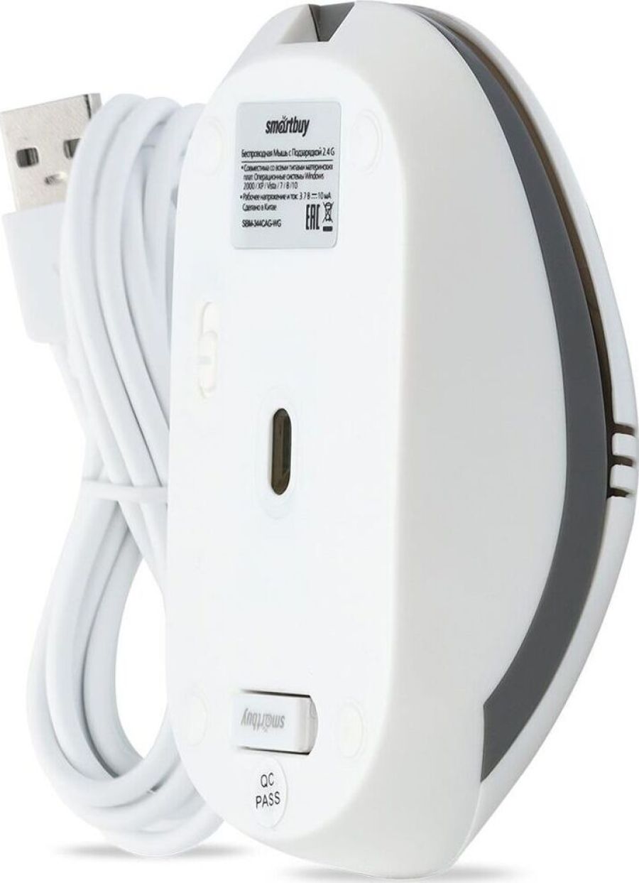 Комплектация: Мышь беспроводная SMARTBUY ONE 344CAG с зарядкой от USB бело-серый , Тип подключения: беспроводной