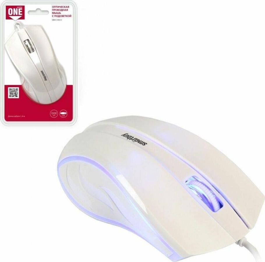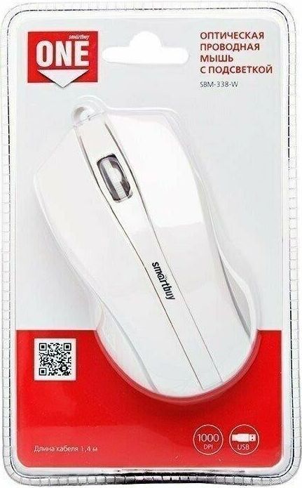 Комплектация: Мышь проводная SMARTBUY ONE 338 черный , Тип подключения: проводной
