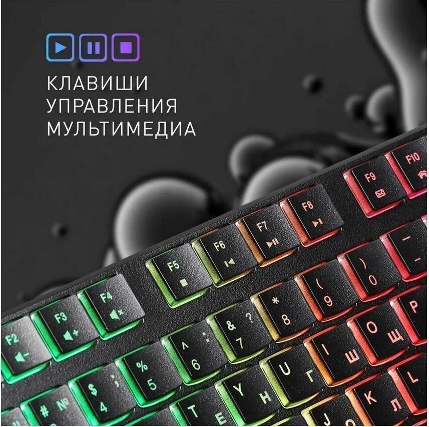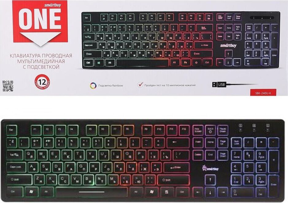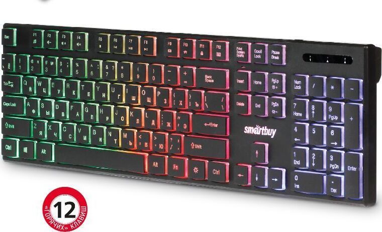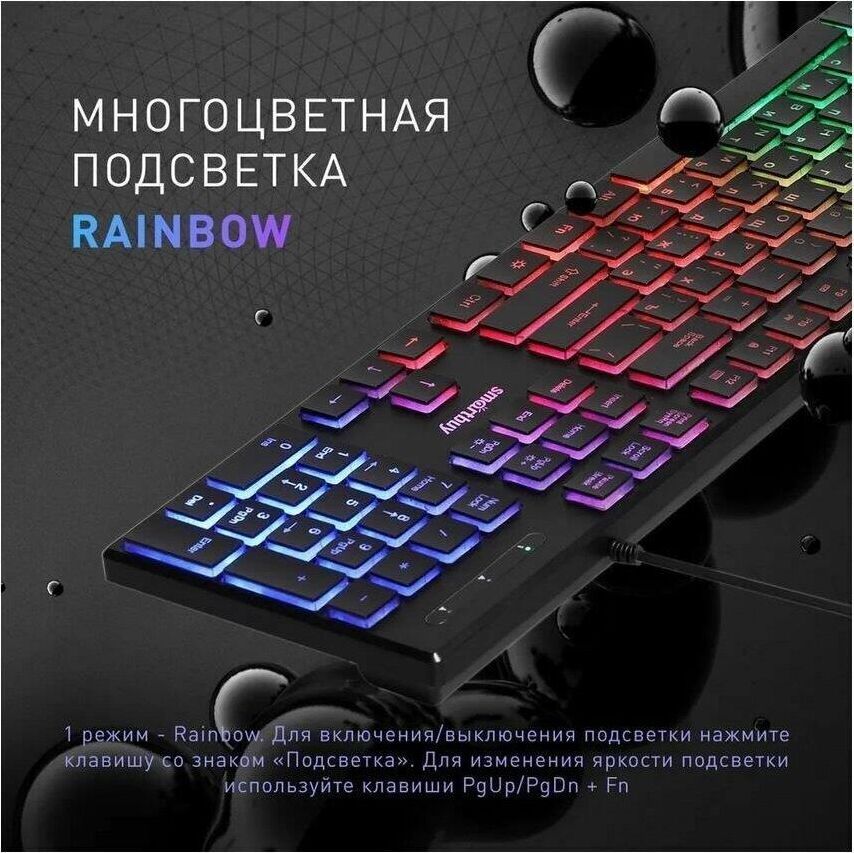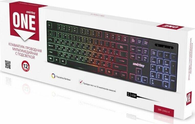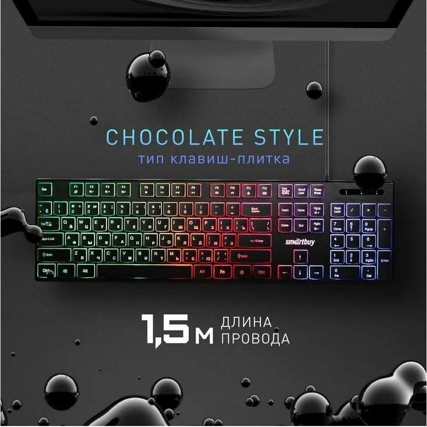 Клавиатура проводная, мультимедийная, подсветка Rainbow, интерфейс подключения USB, количество "горячих" клавиш - 12, Chocolate-style, ультра-слим, длина кабеля - 1,35 м.