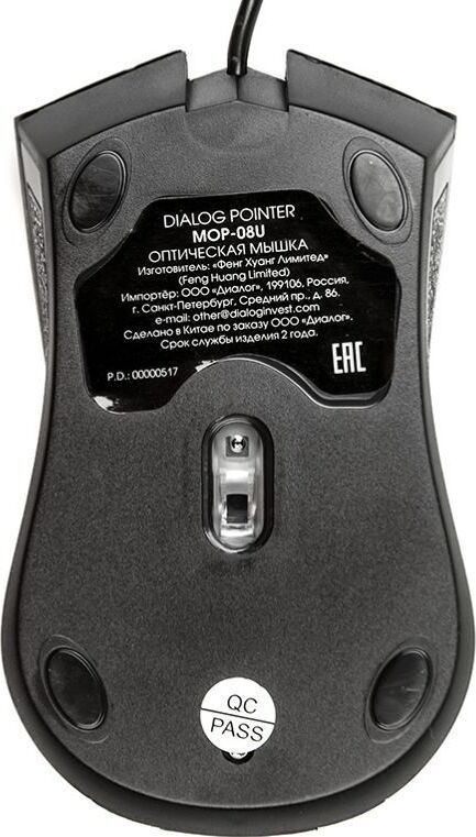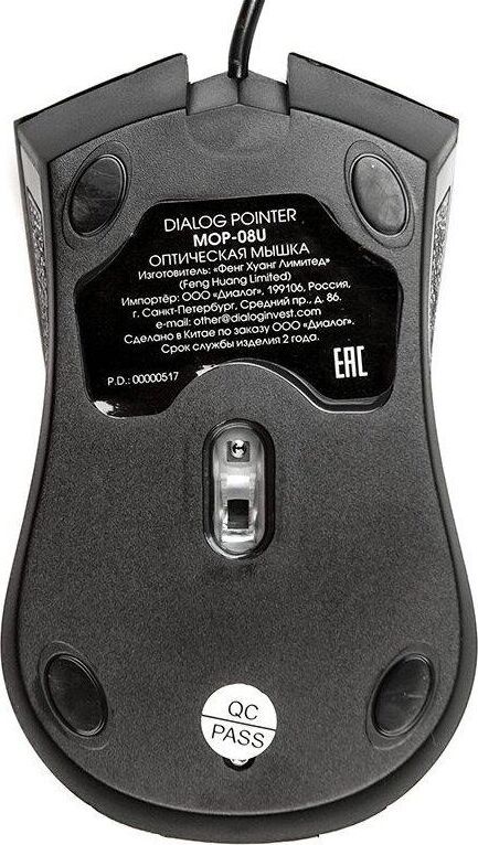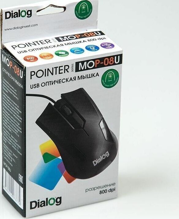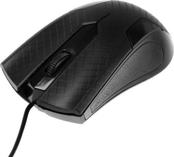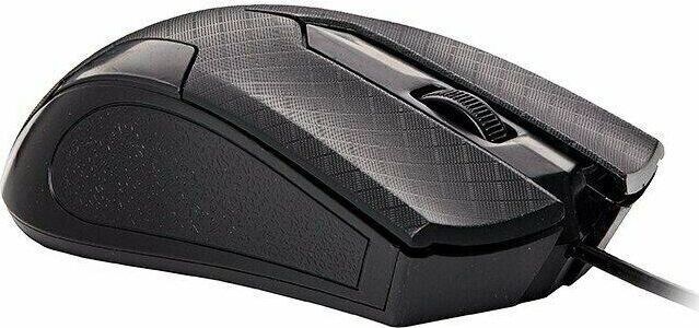 Проводная оптическая мышь. Дизайн для правой и левой руки. Разрешение: 800 dpi. Динамически изменяемое разрешение: Нет. Количество кнопок: 3. Материал корпуса: черный пластик, фактурное тиснение в верхней и боковых частях. Интерфейс: USB. Длина шнура: 1,5 м. Размеры (В*Ш*Г): 107*64*33 мм. Вес: 54 г.