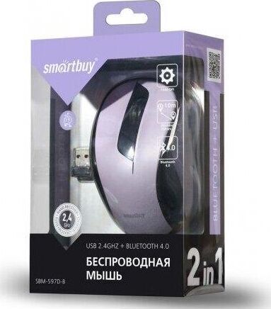 Мышь беспроводная - 2в1 - Bluetooth +USB, количество кнопок - 3, разрешение 1000 dpi, матовое износостойкое UV-покрытие контактной зоны, радиус действия - до 10 м.