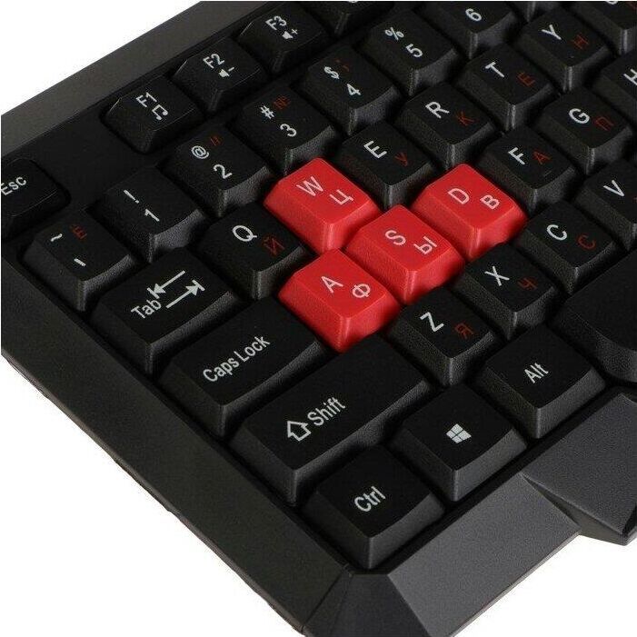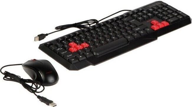 Комплект проводной ( клавиатура+мышь ) , мультимедийный , двухцветная раскладка клавиатуры; 12 мультимедийных клавиш; 8 цветных клавиш для игр; мышь - оптическая, количество кнопок - 3, разрешение - 1200 dpi кабель у мыши и клавиатуры 1,5 м.