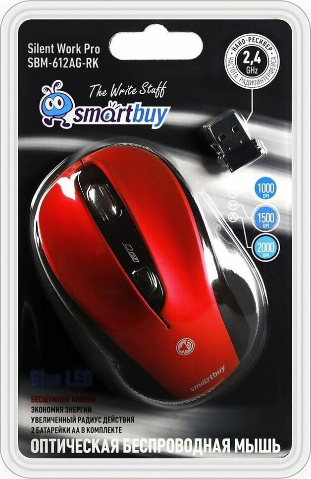 Мышь беспроводная, оптическая, БЕСШУМНАЯ, количество кнопок - 5+колесо прокрутки, изменяемое разрешение мыши (dpi): 1000 / 1500 / 2000, интерфейс подключения: USB, радиус действия - до 10 м.