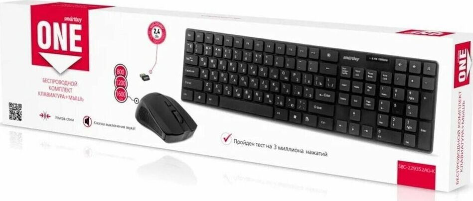 Комплект беспроводной (клавиатура+мышь), интерфейс USB, клавиатура - ультра-слим, количество клавиш 104, мультимедийных - 4, мышь - олптическая, количество кнопок - 6, изменяемое разрешение 800/1200/1600, цвет - черный.