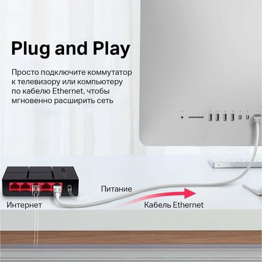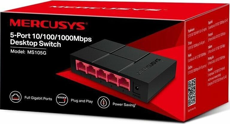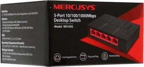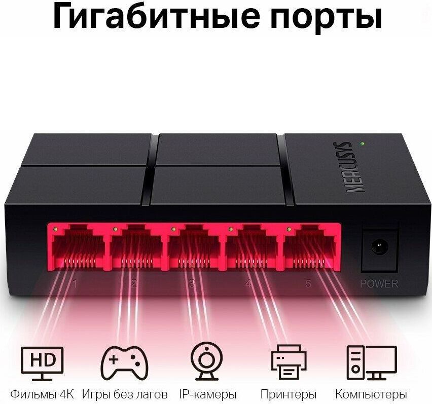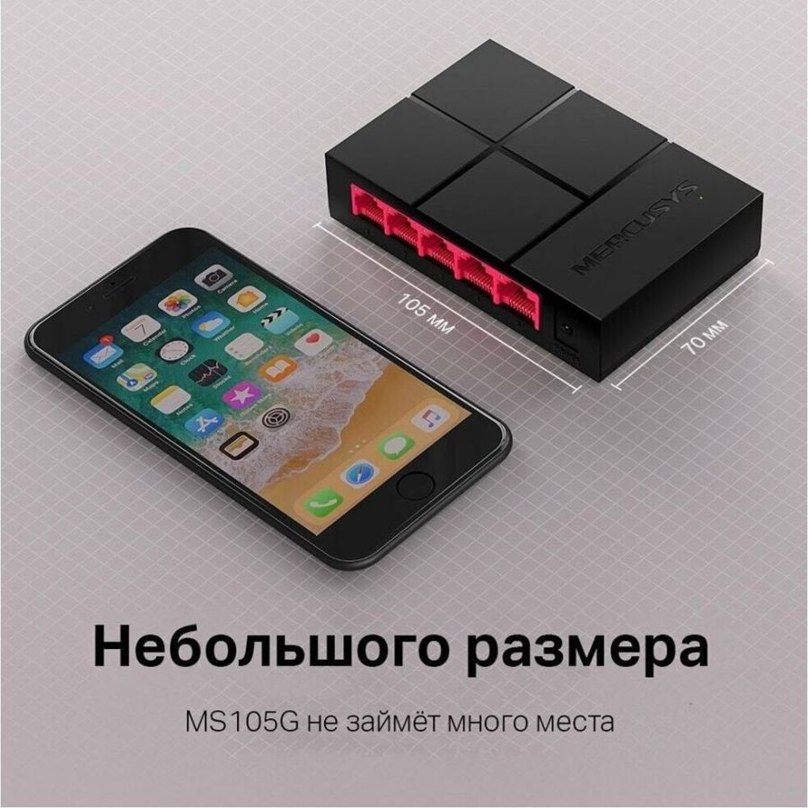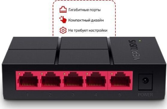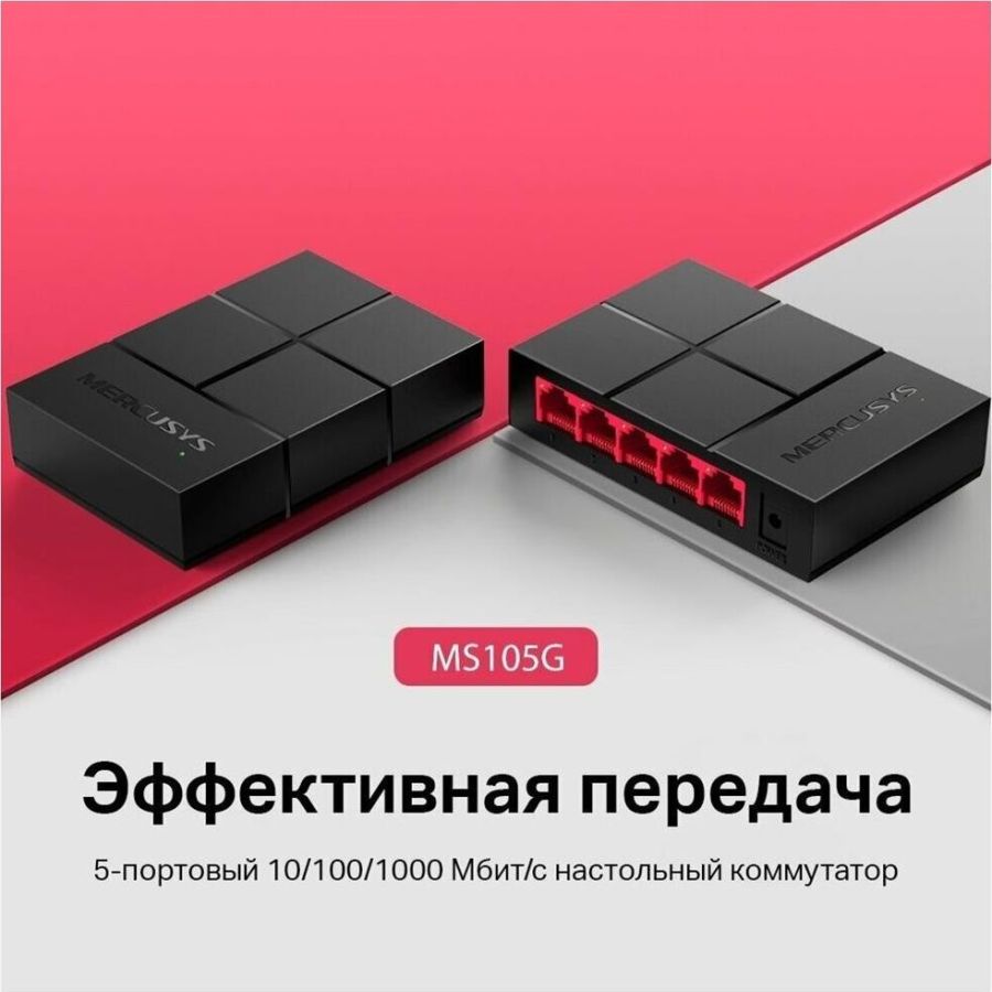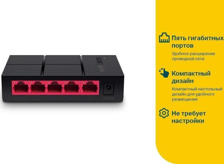 Неуправляемый гигабитный коммутатор Mercusys, 5 портов LAN RJ-45 10/100/1000 Мбит/с, настольный/настенный, пластиковый корпус