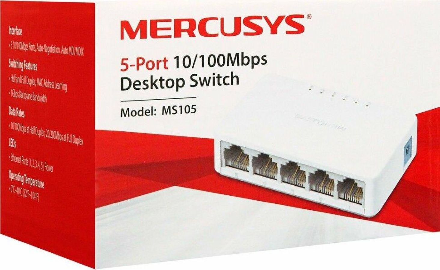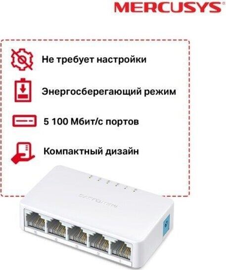 Коммутатор Неуправляемый Mercusys MS105 с легкостью объединит до 5 устройств с поддержкой сети 10/100 Мбит/сек в вашу локальную сеть с пропускной способностью 1 Гбит/с. Коммутатор оснащен широкими возможностями для настройки - можно настроить до 2048 MAC адресов. Он поддерживает стандарты: IEEE 802.3ab 1000Base-T, IEEE 802.3x Flow Control, IEEE 802.3 10Base-T. Модель Mercusys MS105 имеет размеры 82x49x21 мм.