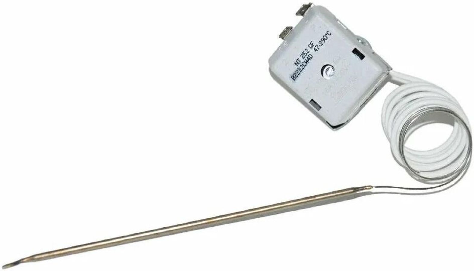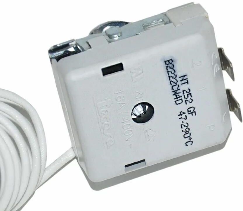 Терморегулятор; Сила тока: 16A; Напряжение: 400V; Температурный диапазон: 47-290°C; Высота штока: 25мм; Диаметр штока: 6 мм; Длина щупа: 157 мм; Длина капилляра: 1000 мм; Общие габариты корпуса с контактами и со штоком (ДхШхВ): 46х38х48,5 мм