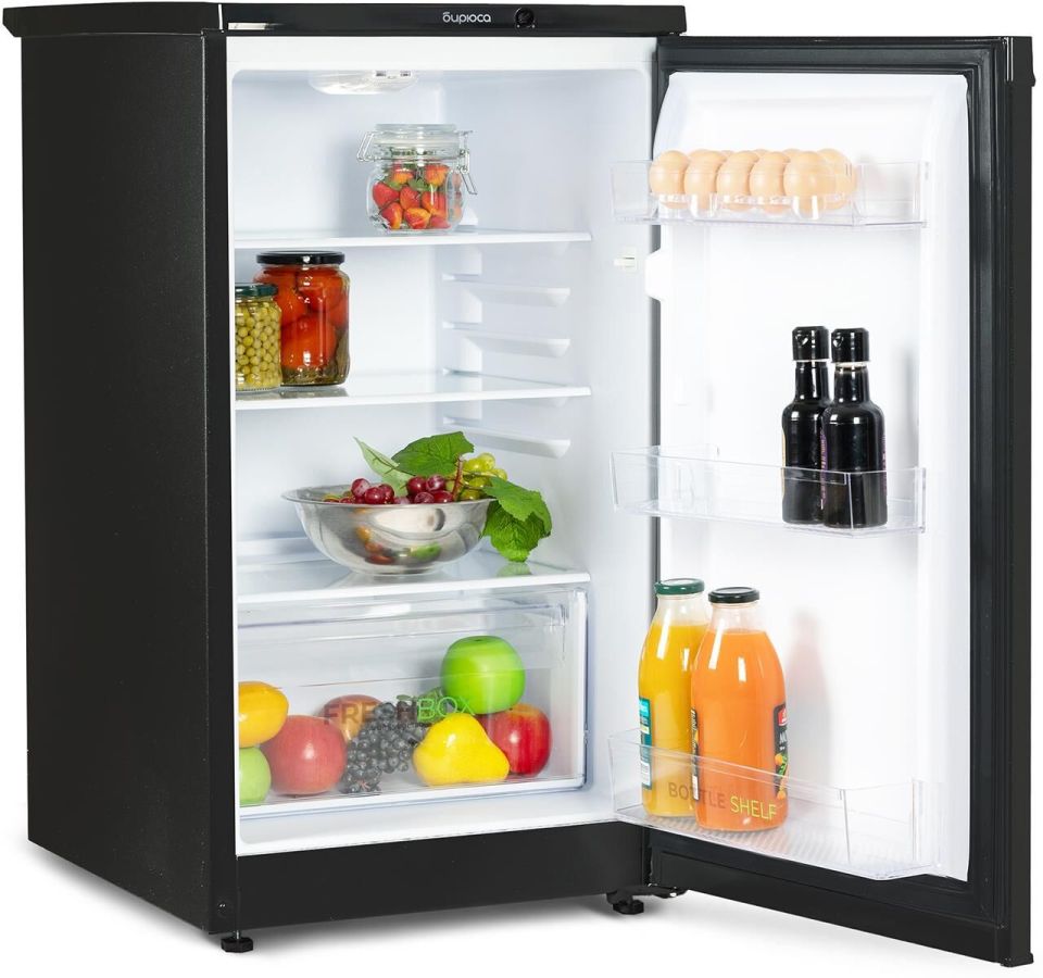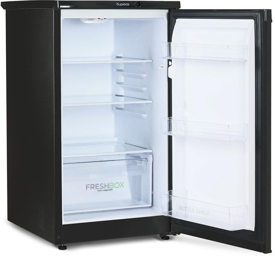 Узкий однокамерный холодильник без морозильного отделения; Габариты (ВхШхГ): 87x48x60,5см; Цвет: Черный; Управление Механическое; Освещение: LED; Общий объем, л: 115; Объем холодильной камеры, л: 115; Количество камер: 1; Количество компрессоров: 1; Суточный расход электроэнергии, при температуре окружающего воздуха 24°C, кВтч: 0.47; Климатический класс: N; Возможность перевешивания двери; Класс энергоэффективности: A; Максимальный уровень шума, дБ: 40