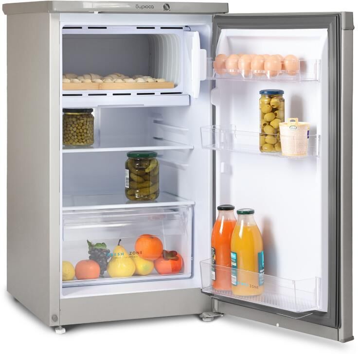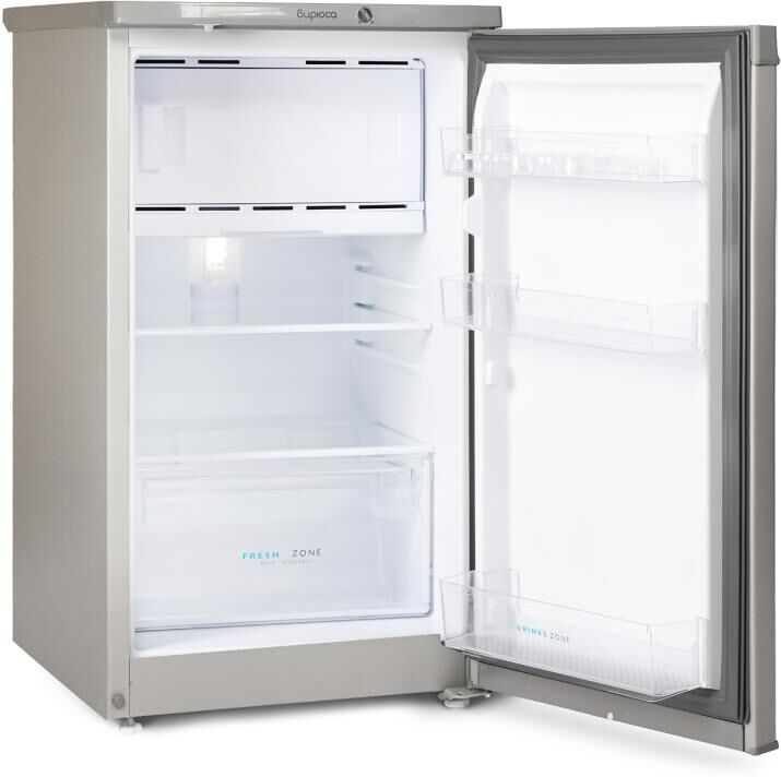 Аналог Бирюса М108 115л металлик. Габариты (ВхШхГ): 86,5х48х60,5см; Цвет: Металлик; Общий объем: 115л; Холодильная камера: 88л; Морозильная камера: 27л.; Количество камер: однокамерный; Расположение морозильной камеры: Верхнее; Компрессор: 1; Управление: механическое; Температура в режиме хранения в морозильной камере (отделение "две звезды"): не выше,°C: -12; Освещение: LED; Класс энергоэффективности: A; Ручная разморозка морозильной камеры; Светодиодная лампа освещения; Перенавешиваемые дверцы; Регулируемые по высоте ножки; Уровень шума: 40дБ