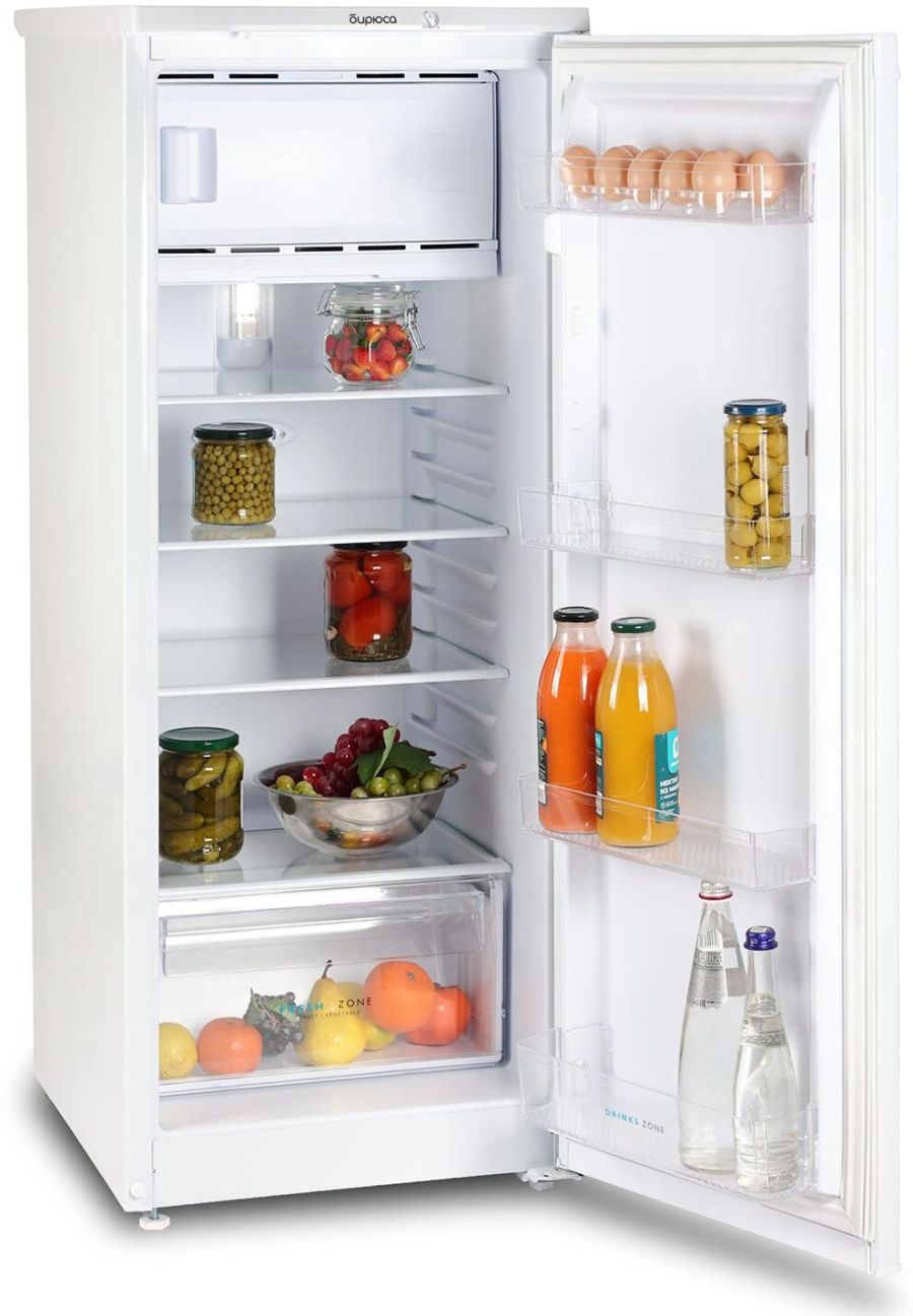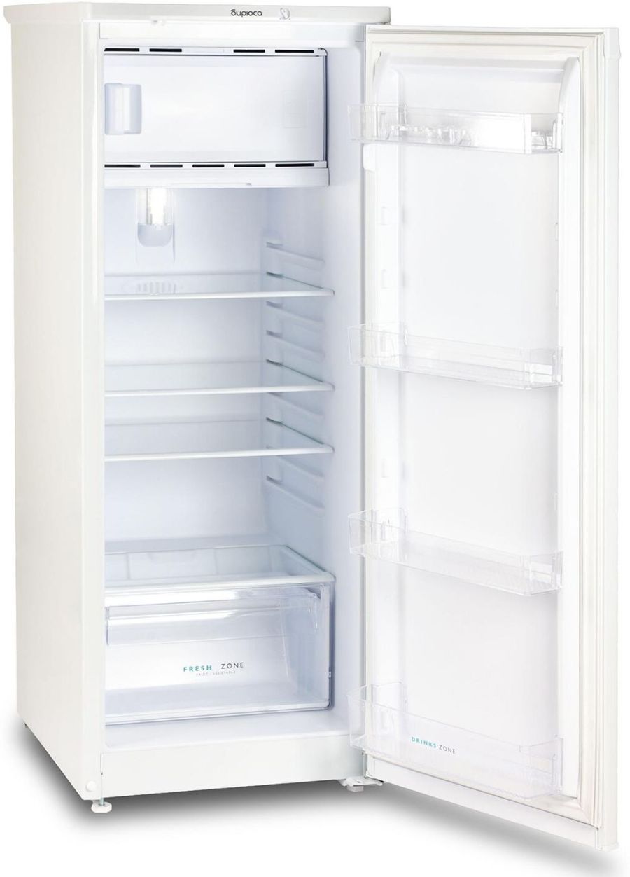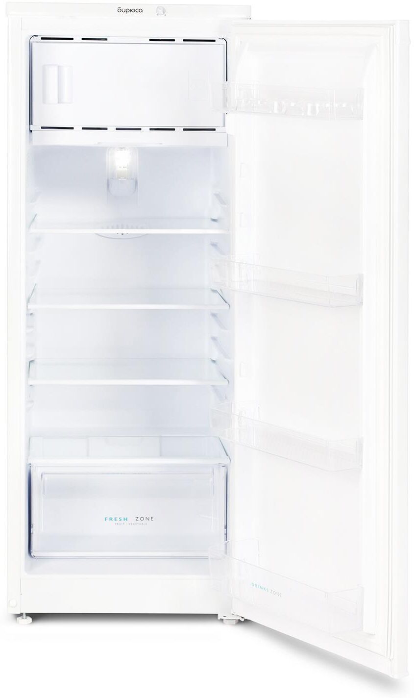 Аналог Бирюса Б110 180л белый; Габариты (ВхШхГ): 122,5x48x60,5см; Общий объем: 180л; Холодильная камера: 153л; Морозильная камера: 27л.; Количество камер: однокамерный; Расположение морозильной камеры: Верхнее; Компрессор: 1; Управление: механическое; Температура в режиме хранения в морозильной камере (отделение "две звезды"): не выше,°C: -12; Освещение: LED; Класс энергоэффективности: A; Ручная разморозка морозильной камеры; Светодиодная лампа освещения; Перенавешиваемые дверцы; Регулируемые по высоте ножки; Уровень шума: 40дБ; Цвет: Белый