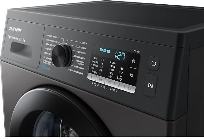 Размеры (ШxВxГ) 600 x 850 x 450 см. Загрузка (кг) 7.0. ; Цвет корпуса Инокс. Дверца Черный. ; Панель дисплея LED (сенсорная панель). ; Класс энергоэффективности (IEC) A. ; Класс энергоэффективности (ERP) A+++. ; Электропотребление (за цикл) 1.19 кВт. ; Потребление воды (за цикл) 42 л. ; Класс качества стирки A. ;