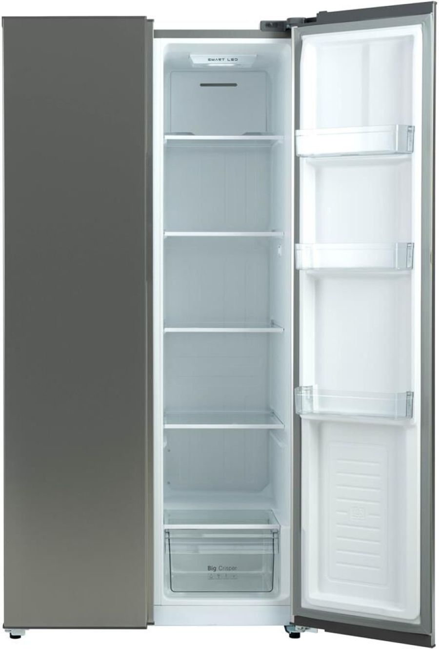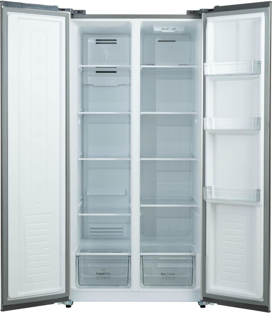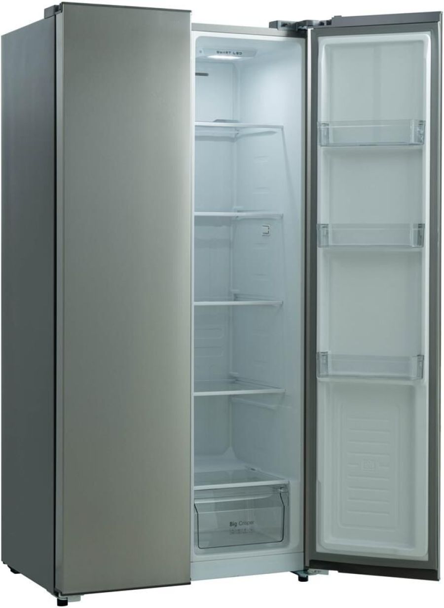 Холодильник Side-by-side цвета нержавеющая сталь • система Full No Frost • LED-освещение • класс энергоэффективности А+ • система распределения воздушных потоков MultiFlow • габариты 171,2x83,6x61см • объем 400/232/168л