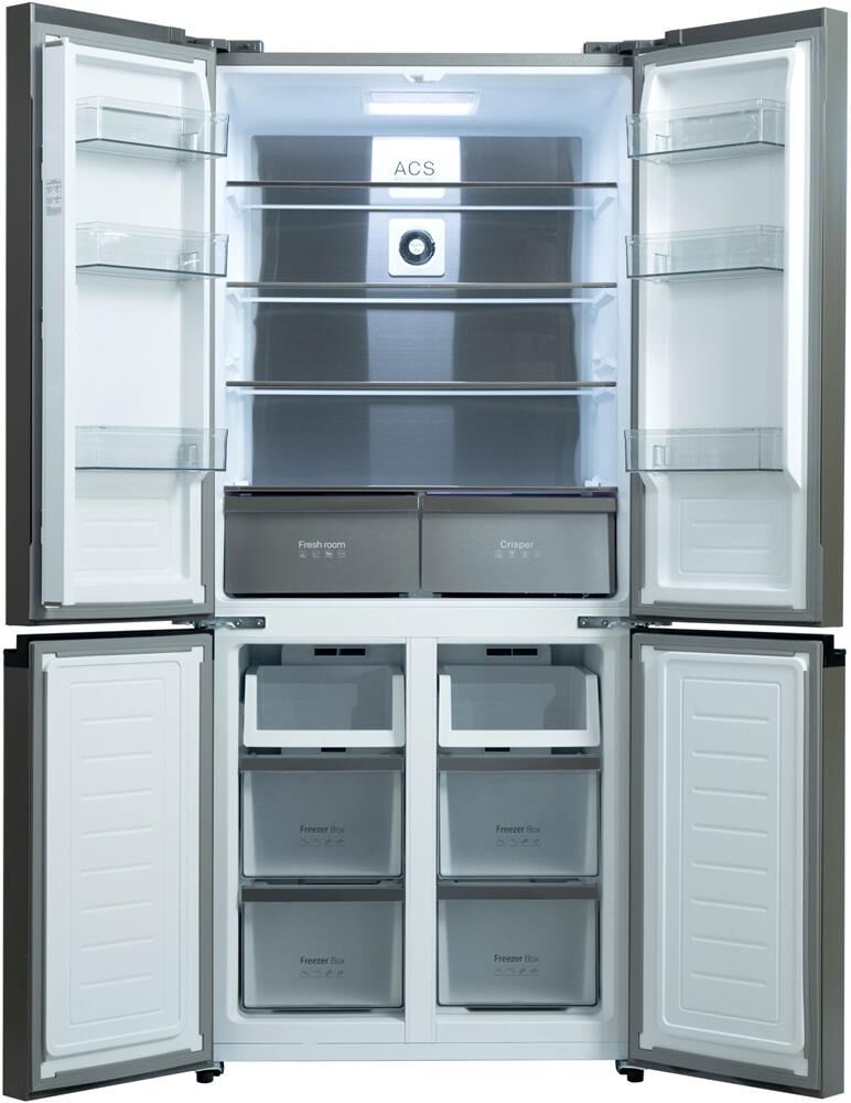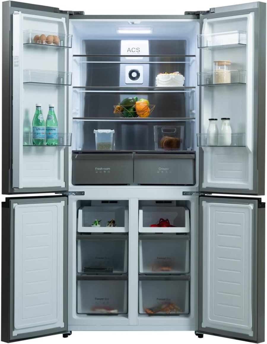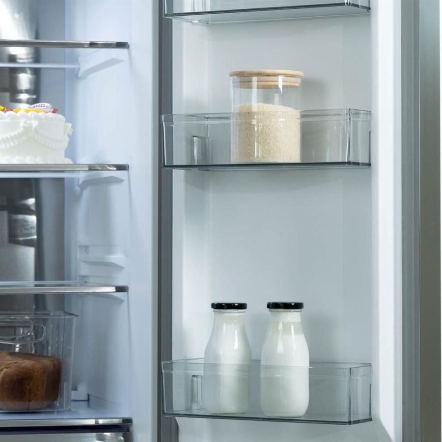 Многокамерный холодильник с текстурированным белым стеклом; Система Full No Frost; Dual Inverter: инверторные компрессор и вентилятор; Класс энергоэффективности А++; Система распределения воздушных потоков MultiFlow; Технология охлаждения Metal Cooling; Деодорирующий фильтр Nano Ag+; Габариты: 189x83,3x66см; Объем: 496/334/162л