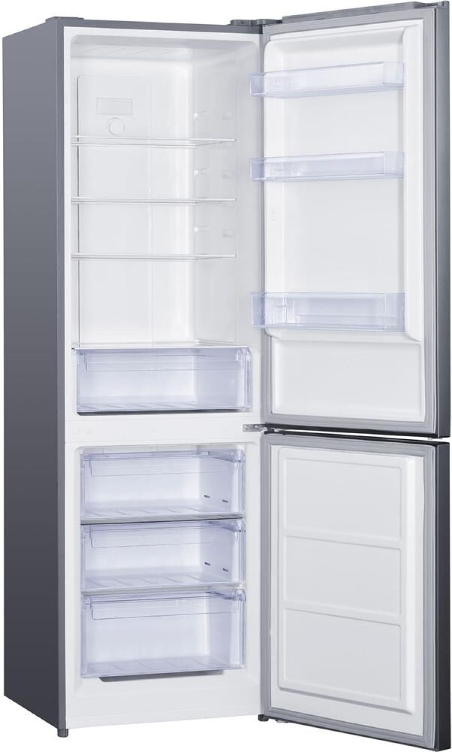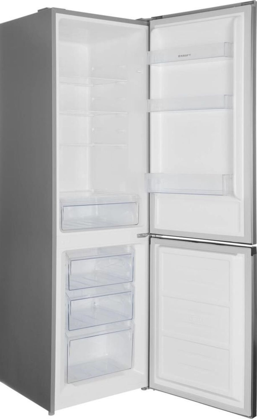 общий/полезный объем — 300/265 л полезный объем ХК/МК — 201/64 л габариты без упаковки (ШхГхВ) — 550х630х1880 мм Total No Frost класс энергопотребления — А+ климатический класс — N-ST хладагент — R600а уровень шума — 42 дБ 3 ящика в морозильном отделении цвет — нерж. сталь