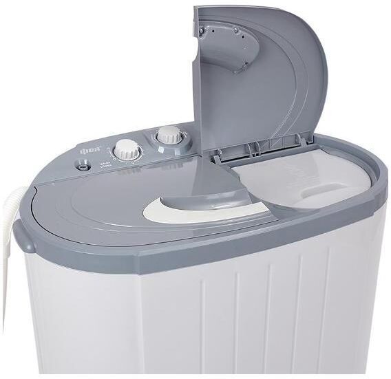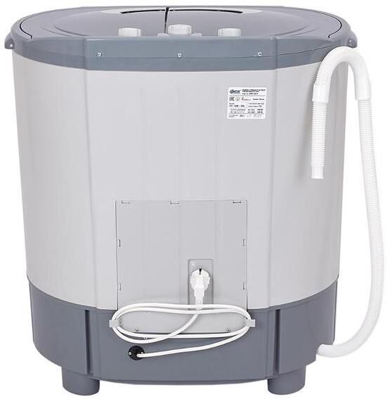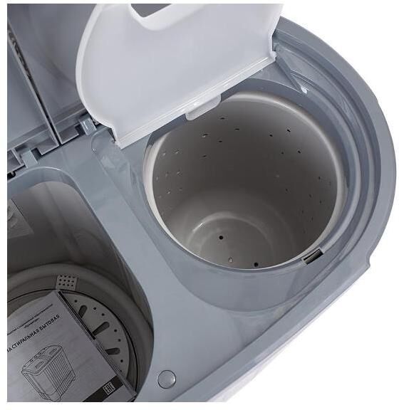 Стиральная машина, полуавтоматическая, активаторного типа с функцией отжима белья. Максимальна загрузка белья в режиме стирки 6 кг, в режиме отжима 5,5 кг. Механическое управление. Режимы стирки: нормальный; для деликатных тканей. Реверс. Таймер стирки до 15 мин, таймер отжима до 5 мин. Оттжим макс. 1300 об./мин. Сливной насос.