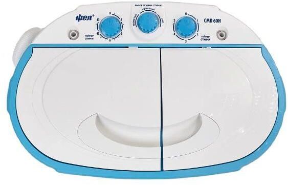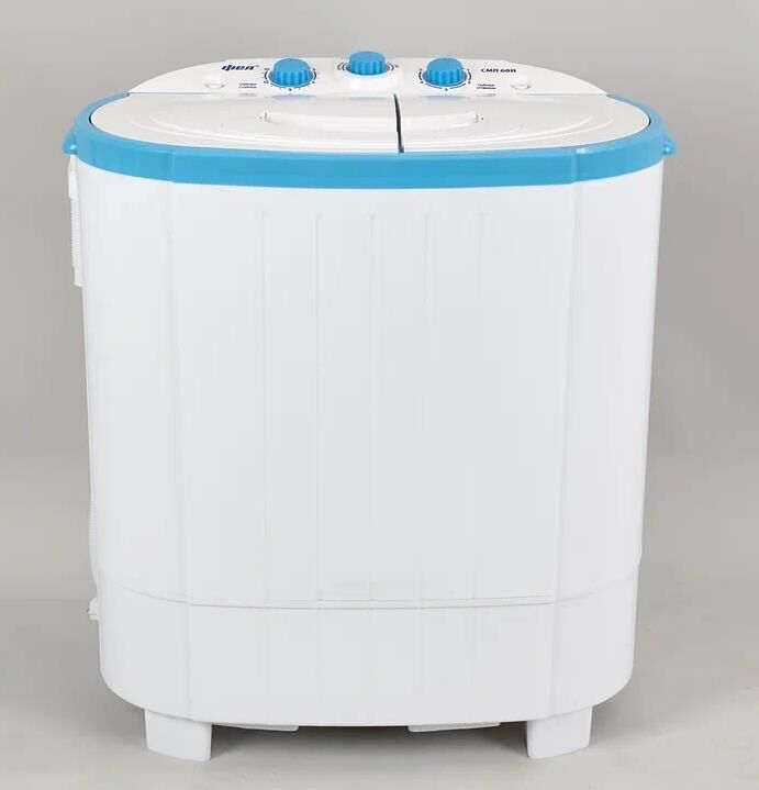 Стиральная машина, полуавтоматическая, активаторного типа с функцией отжима белья. Максимальна загрузка белья в режиме стирки 6 кг, в режиме отжима 5,5 кг. Механическое управление. Режимы стирки: нормальный; для деликатных тканей. Реверс. Таймер стирки до 15 мин, таймер отжима до 5 мин. Оттжим макс. 1300 об./мин. Сливной насос.