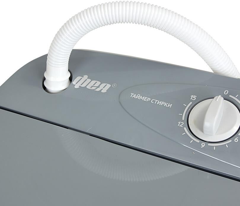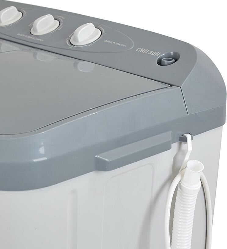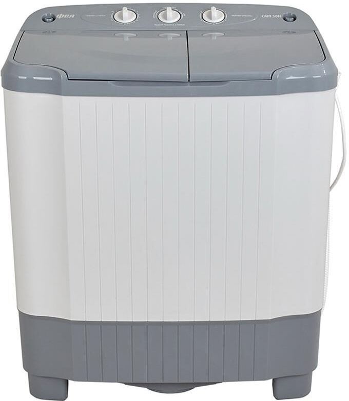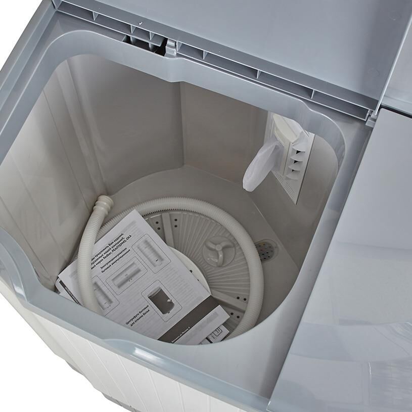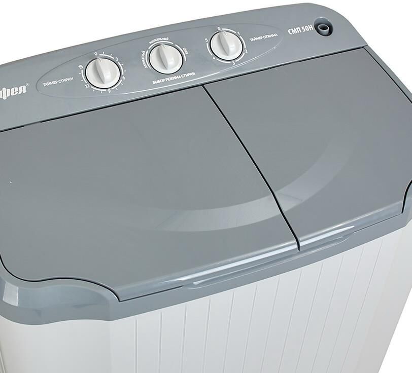 Стиральная машина, полуавтоматическая, активаторного типа с функцией отжима белья. Максимальна загрузка белья в режиме стирки 5 кг, в режиме отжима 4,5 кг. Механическое управление. Режимы стирки: нормальный; для деликатных тканей. Реверс. Таймер стирки до 15 мин, таймер отжима до 5 мин. Оттжим макс. 1300 об./мин. Сливной насос.