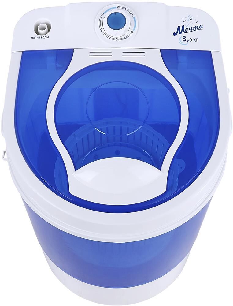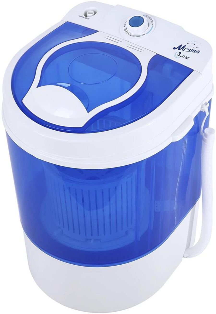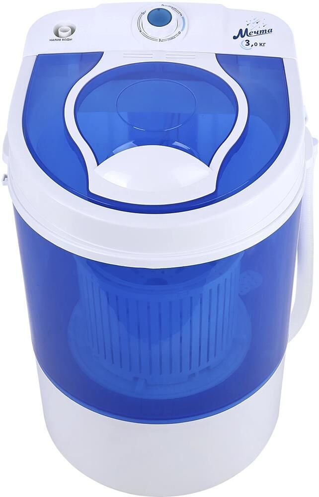 Габариты прибора — 37,5х37,5х57,5см. Стиральная машина полуавтоматическая МЕЧТА WMS S303UT01 Однобаковая стиральная машина с возможностью предварительного отжима белья. Загрузка для стирки — до 3кг; загрузка для отжима - до 1,5кг. В комплекте корзина, которую можно подсоединить к активатору и произвести легкий отжим. Мобильность. Простота в эксплуатации. Экономия воды. Низкое энергопотребление. Быстрый цикл стирки. Низкий уровень шума. Интуитивно понятное управление одним регулятором. Прозрачные корпус и крышка для полного визуального контроля. Большой активатор. Только первичный пластик -прочнее, надежнее, долговечнее Скорость центрифуги — 300 об/мин. Вес: 5,65кг. Мощность мотора: 135Вт
