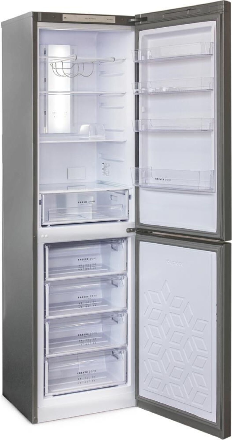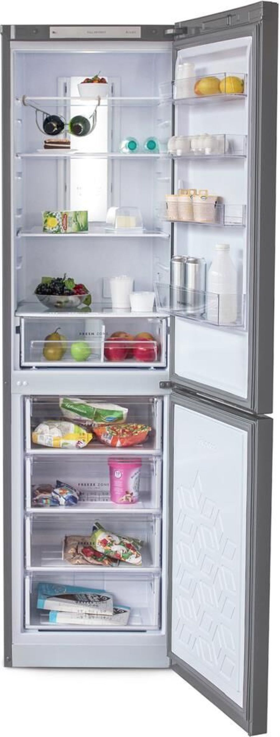 Габариты: 207х60х62,5см; Цвет: Нержавеющая сталь; Система Full No Frost; Объем: 370/240/130л; LED дисплей на двери; Система охлаждения Multi Air Flow; Регулировка влажности Humidity control; Единая зона для овощей и фруктов Fresh Zone с разделителем; Полка для бутылок, масленка; LED освещение; Класс энергоэффективности: A; Климатический класс: N, ST; Возможность перевешивания двери; Автономное сохранение холода, ч: 17; Мощность замораживания, кг/сутки: 5; Минимальная температура в морозильной камере, °C: -18
