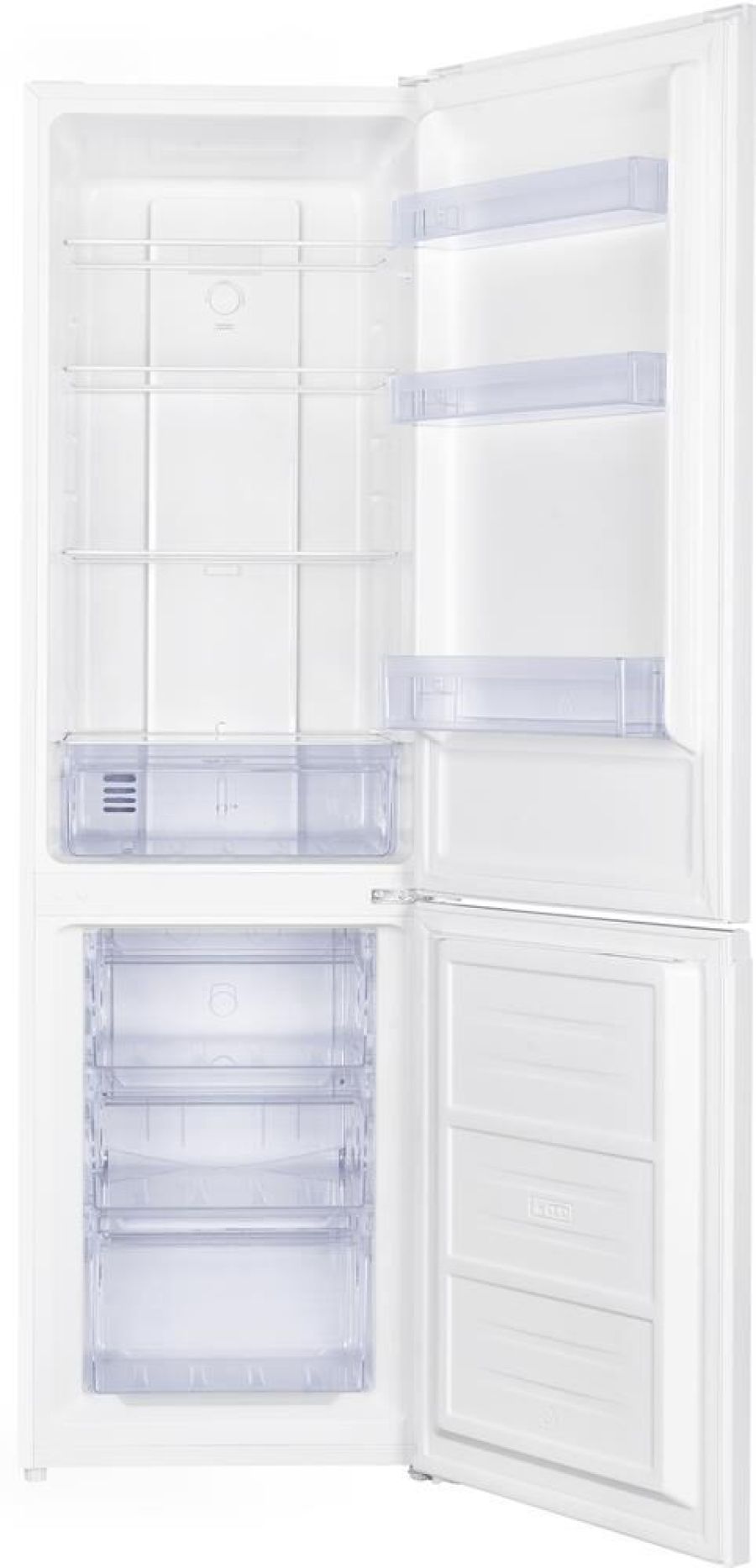 Габариты без упаковки (ШхГхВ) 55х63х188 см общий/полезный объем 300/265 л полезный объем ХК/МК 201/64 л Total No Frost класс энергопотребления А+ климатический класс N-ST хладагент R600а уровень шума 42 дБ 3 ящика в морозильном отделении цвет белый