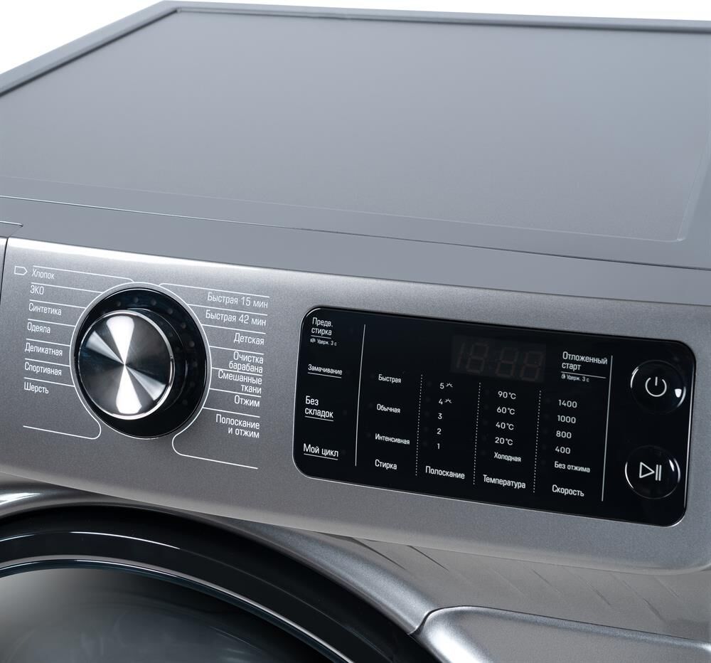 Габариты ВхШхГ: 85x59,5х64см; Тип загрузки: Фронтальная; Тип двигателя: Инверторный прямой привод; Тип управления: LED дисплей, сенсорное управление; Загрузка: 10 кг; Максимальная скорость отжима: 1400 об/мин; Прямой привод (с мотором Direct Drive); Количество программ: 14; Уровень шума в режиме Стирка: 60 дБ; Уровень шума в режиме Отжима: 75 дБ; Объем барабана, л: 63; Диаметр люка: 30; Класс энергоэффективности: A+++