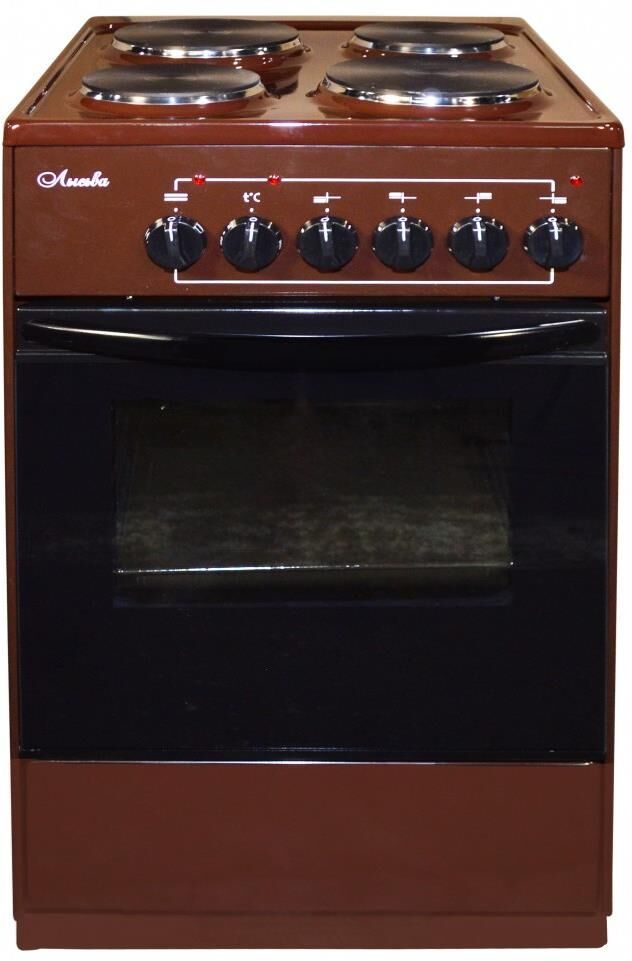 (ШхГхВ)50х60х84см. Цвет коричневый.Количество конфорок 4.Тип духовки электрическая.Объём духовки, л57.Дверца с двойным стеклом.Противень Решетка.Место для хранения кухонных принадлежностей хоз.отсек. Металлический фасад ящика.Масса НЕТТО (БРУТТО), кг30 (36).