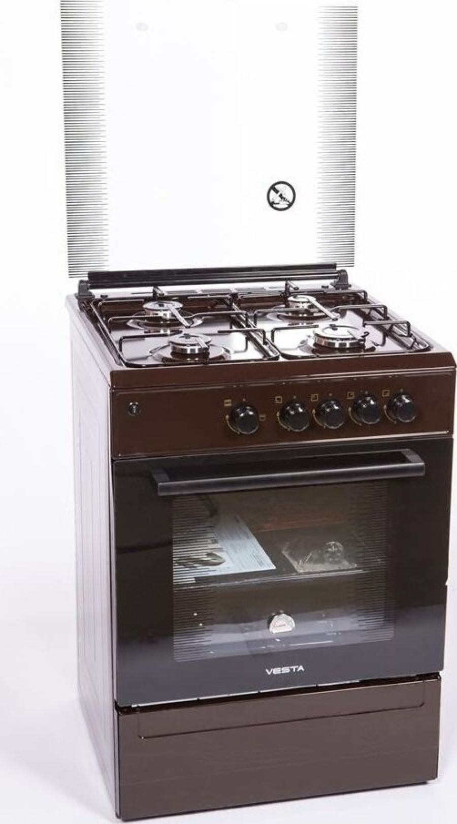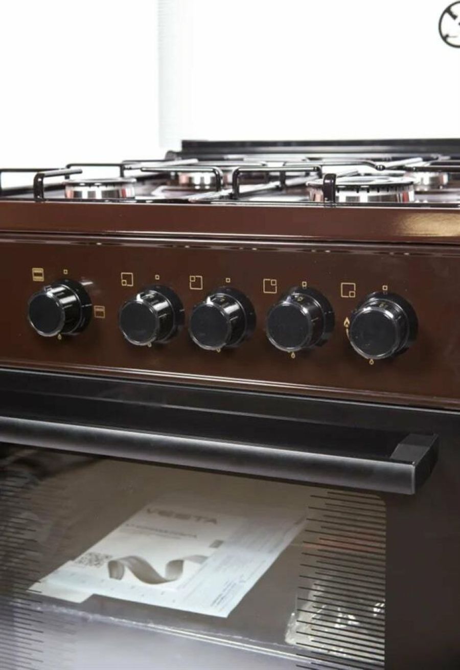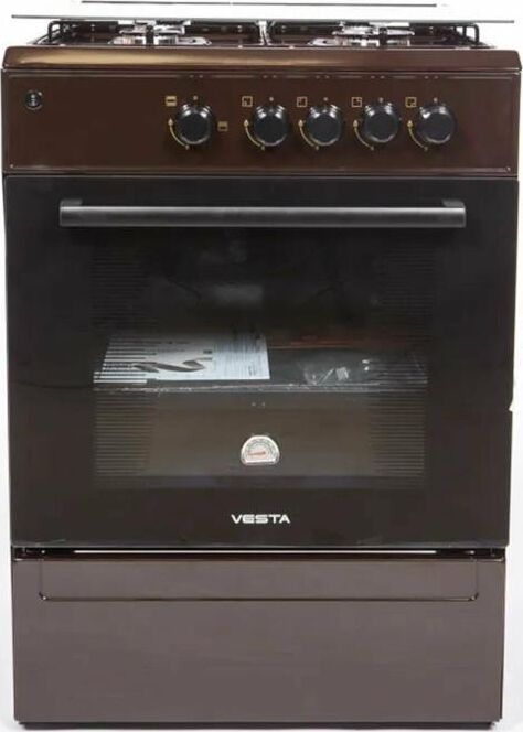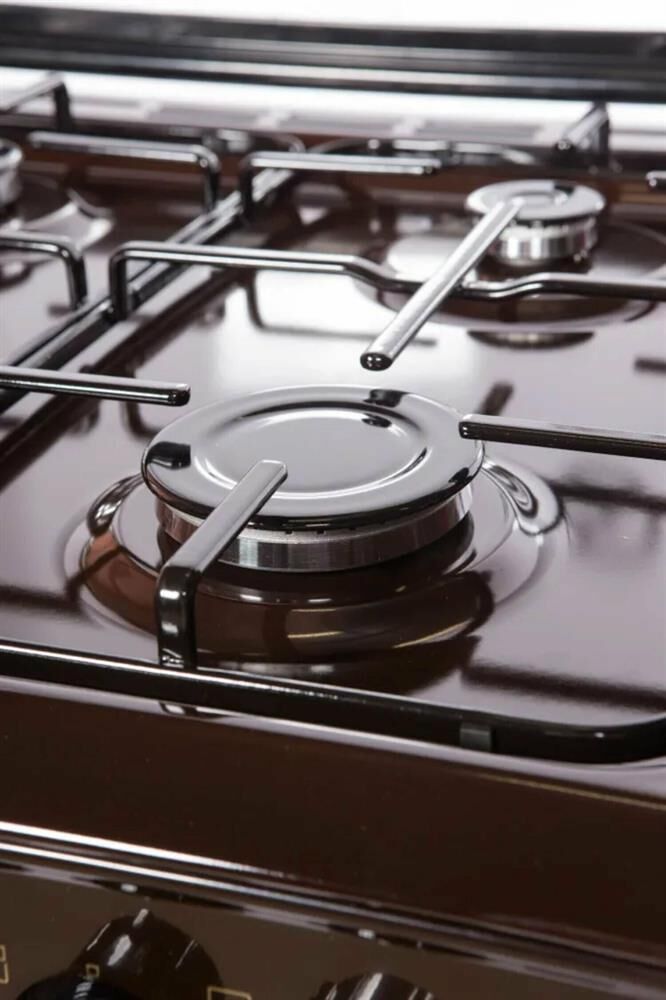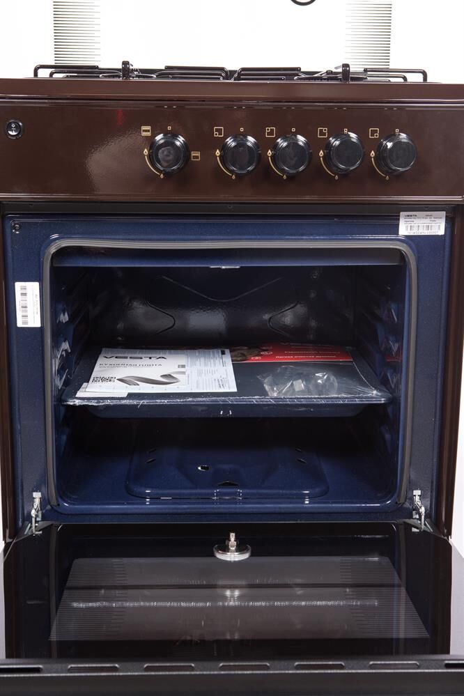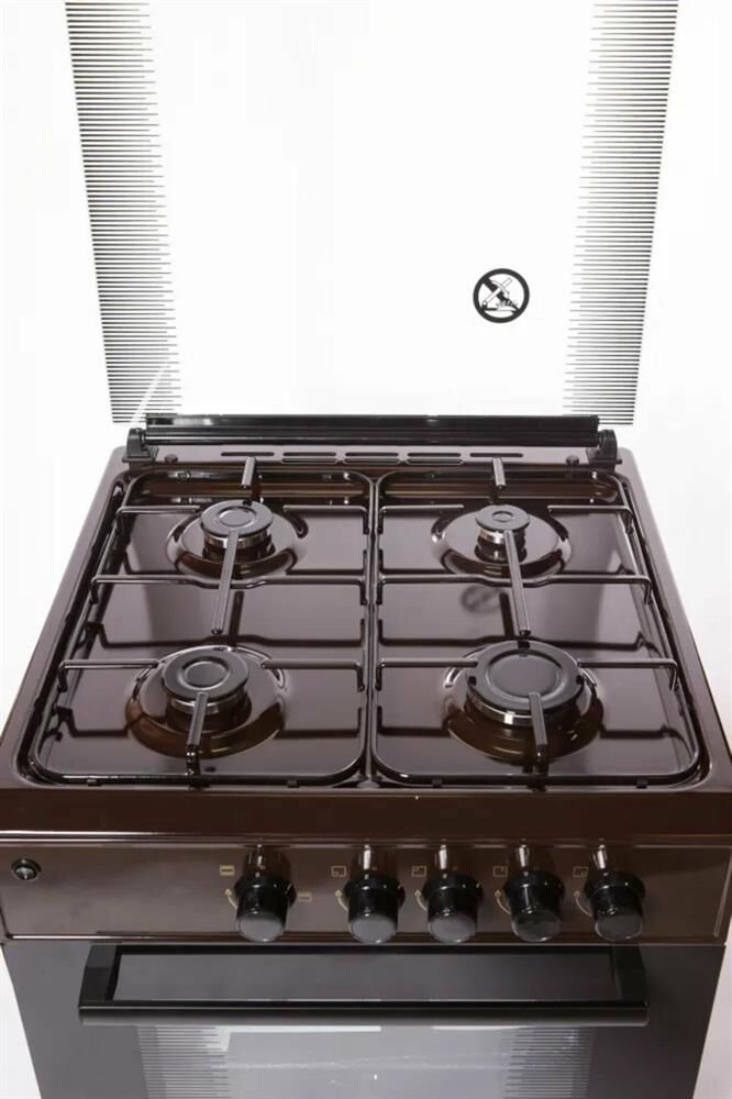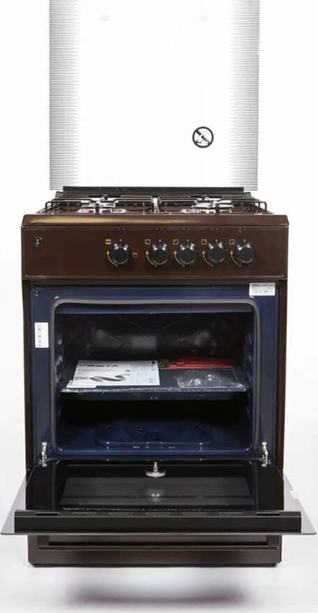 Горелки стола: Газовые – 4 шт. Мощность горелок рабочего стола: Горелка передняя левая/правая – 2,0/2,4 кВт. Горелка задняя левая/правая – 2,0/1,0 кВт. -Мощность горелки духовки – 2,5 кВт. -Объем духовки в литрах: 65 л. Верхний/нижний нагреватель духовки – газ. Газ-контроль духовки. Решетка рабочего стола – сталь. Крышка рабочего стола – стекло. Термометр духовки. Кнопка электророзжига горелок стола. Электрическая подсветка духовки. Противень – 2 шт. Цвет Коричневый