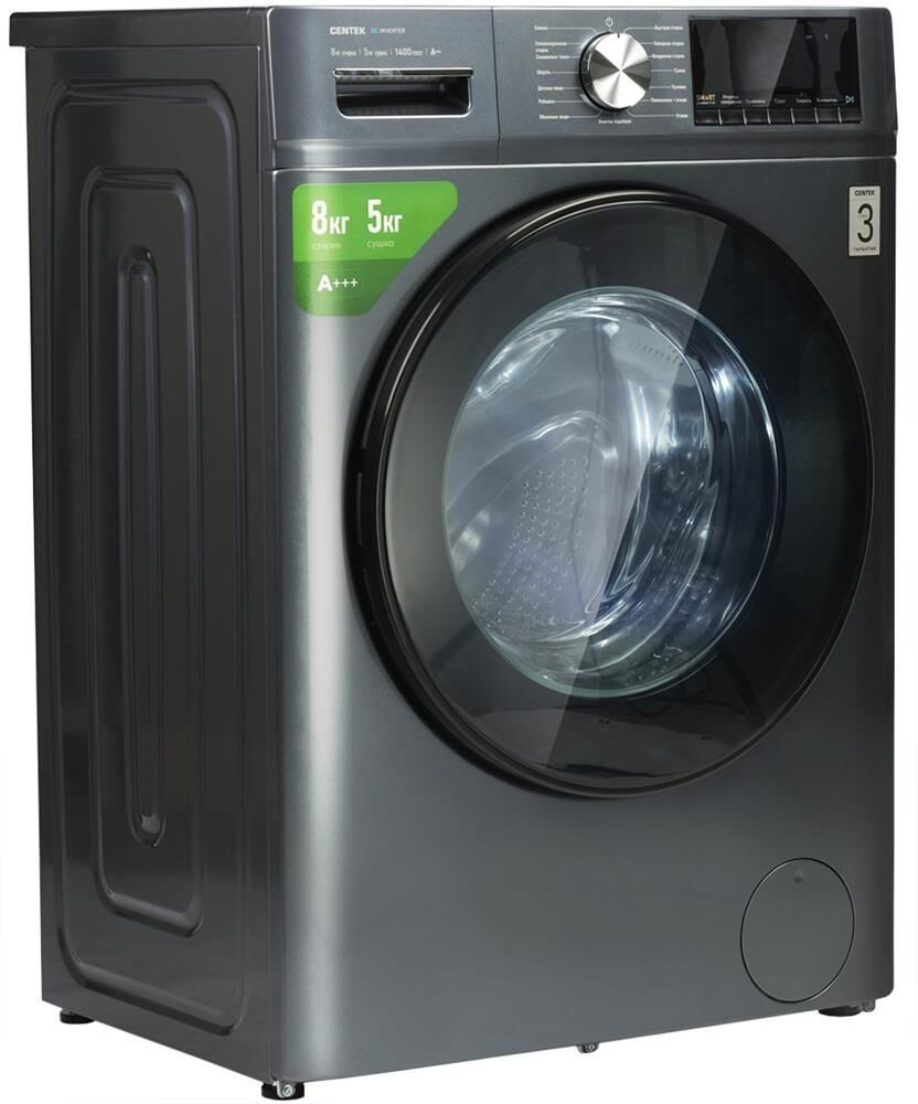 (ШхГхВ) 60 х 43 х 84.7 см Макс. загрузка 8/5 кг (стирка/сушка) Макс. скорость отжима 1400 об/мин Объем барабана 54 л Класс А+++ Мощность 2000/1600 Вт (стирка/сушка) Кол-во режимов 16 Режимы Smart, Автоматическая балансировка белья, Без звука, Блокировка от детей, Догрузка белья, Мое время, Очистка барабана Управление Сенсорное Диаметр 480 мм (дверца) Вес нетто 60 кг Вес брутто 65 кг Уровень шума 62/69/76 дБ (стирка/сушка/отжим) Особенности Инверторная система, Увеличенный объем камеры, Электронный регулятор устойчивости Класс защиты IPx4 Класс электробезопасности I Класс эффективности отжима А Потребление воды за цикл 48 л Энергопотребление за цикл 1,05/6,45 кВт/ч (стирка/стирка+сушка) Необходимое давление в водопроводе 0,03 1 МПа Функция "Сушка" Есть Функция "Пар" Нет Гарантия 3 года