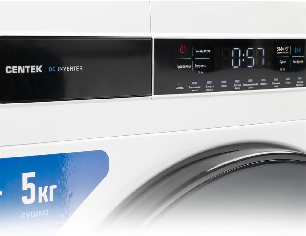 (ШхГхВ) 60х43х84,7 см Макс. загрузка 8/5 кг (стирка/сушка) Макс. скорость отжима 1400 об/мин Объем барабана 54 л Класс А+++ Мощность 2000/1600 Вт (стирка/сушка) Кол-во режимов 11 Режимы Smart, Автоматическая балансировка белья, Без звука, Блокировка от детей, Догрузка белья, Мое время, Очистка барабана Управление Сенсорное Диаметр 480 мм (дверца) Вес нетто 60 кг Вес брутто 65 кг Уровень шума 62/69/76 дБ (стирка/сушка/отжим) Особенности Инверторная система, Увеличенный объем камеры, Электронный регулятор устойчивости Класс защиты IPx4 Класс эффективности отжима А Класс электробезопасности I Потребление воды за цикл 48 л Энергопотребление за цикл 1,05/6,45 кВт/ч (стирка/стирка+сушка) Необходимое давление в водопроводе 0,03 1 МПа Функция "Сушка" Есть Функция "Пар" Нет Гарантия 3 года