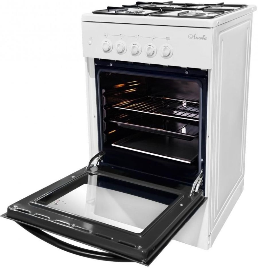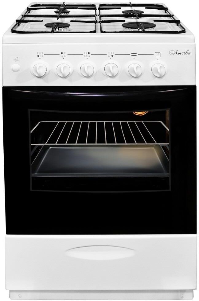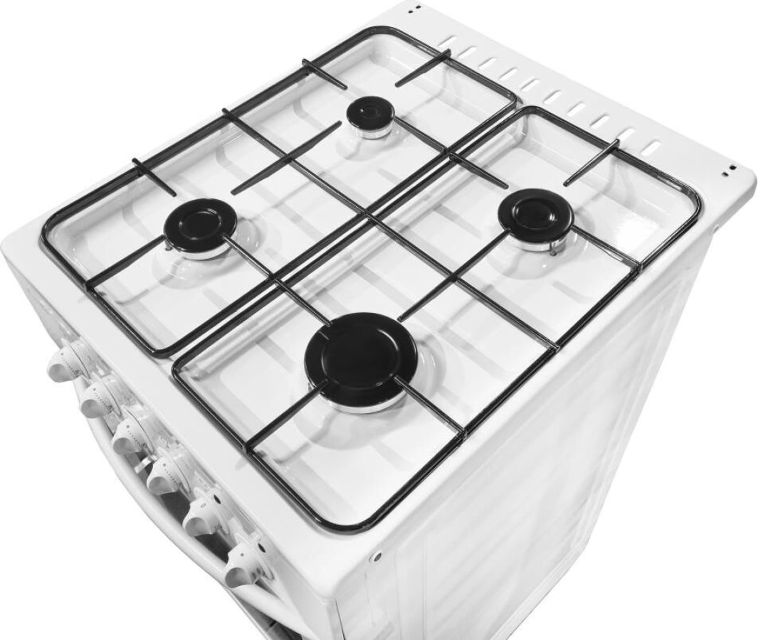 ШхГхВ)50х60х84см.Цвет белый.Тип рабочей поверхности газовая.Количество конфорок 4.Масса НЕТТО (БРУТТО), кг32 (38).Мощность конфорок, кВт (передняя левая)1.5.Тип решетки варочной поверхности стальная эмалированная. Электроподжиг.Тип духовки газовая.Объём духовки, л 57.Газ-контроль духовки. Мощность, кВт2.3.Подсветка.Дверца с двойным стеклом.Комплект инжекторов на сжиженный газ.Место для хранения кухонных принадлежностей.Подставка для посуды малого диаметра.Противень.Решетка.Стеклянная крышка.