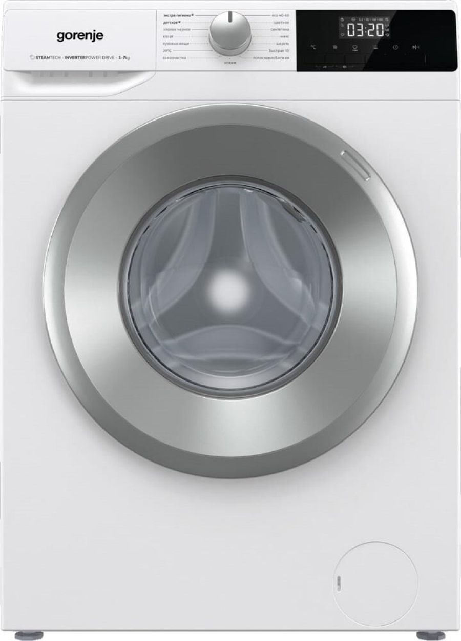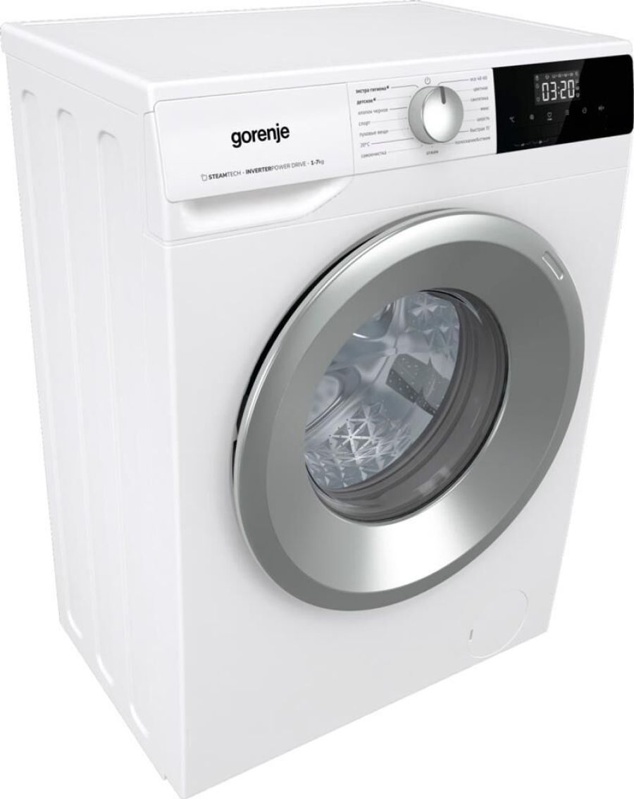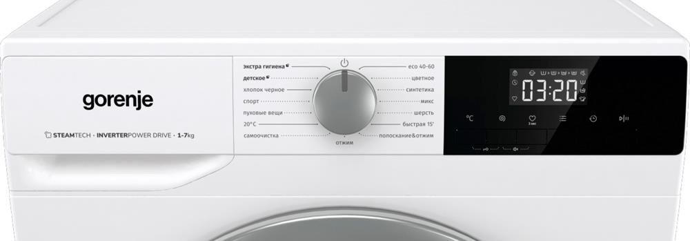 (ШхВхГ)59,7х85х43,5см. Цвет белый.Загрузка 7 кг.Объем барабана 43 л.Скорость отжима 1200 об./мин.Расход воды за год 7260 л.Количество программ 15.Класс энергопотребления A.Класс отжима B.Уровень шума дБ (А) 56.Уровень шума во время отжима дБ (А) 74.SteamTech: обработка паром Да, нагреватель в баке. Сенсор уровня воды.Холодная стирка 15 °C.Дозатор с тремя отделениями.Защита от перелива.Блокировка панели управления.Вес 57кг