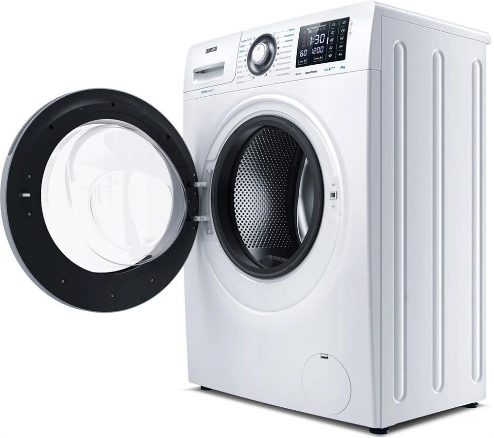 Габариты (ШхГхВ) см 59,6х48,1х85 * Максимальная загрузка сухого белья 8 кг * Максимальная скорость отжима 1200 об/мин * Цвет корпуса белый. Цвет внутреннего обрамления дверцы темно-серый. Цвет наружного обрамления дверцы серебристый * Дисплей * Класс энергоэффективности A+++ * Класс стирки A * Класс отжима B * Количество программ 18 * Количество дополнительных функций 14 * Тип кнопок сенсорные * Самодиагностика * Звуковой сигнал * Защита от детей * Защита от перепадов напряжения в электросети *